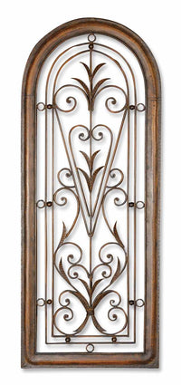 This Decorative Artwork Is Accented By A Hand Forged, Metal Frame. The Light Brown Undercoat Has A Distressed Dark Brown Wash.