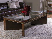 A sleek, large-scale cocktail with contemporary sensibilites and hints of the Art Deco Era, in quartered and crotch black walnut with subtle brass inlays. We designed this piece to appear as an antique, meaning it shows a medium level of distress and signs of age, with subtle bleaching across the veneers to imitate the variations of centuries of light exposure. a coating of English balck wax is applied, completing the antique effect. The wax can be taken down to a matte sheen using 0000 steel wool, or can be buffed to a high sheen with a soft cloth.