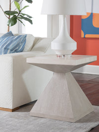 Interesting designs will cause your eye to linger as you contemplate the possibilities of form and function, which is evident with this accent table. Anticato marble sits atop a modern pyramid influenced base in quartered white oak veneers.