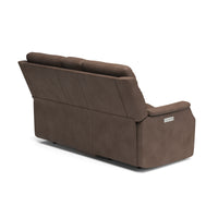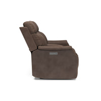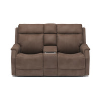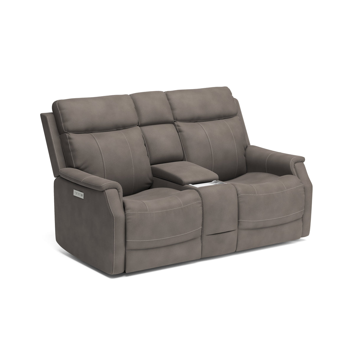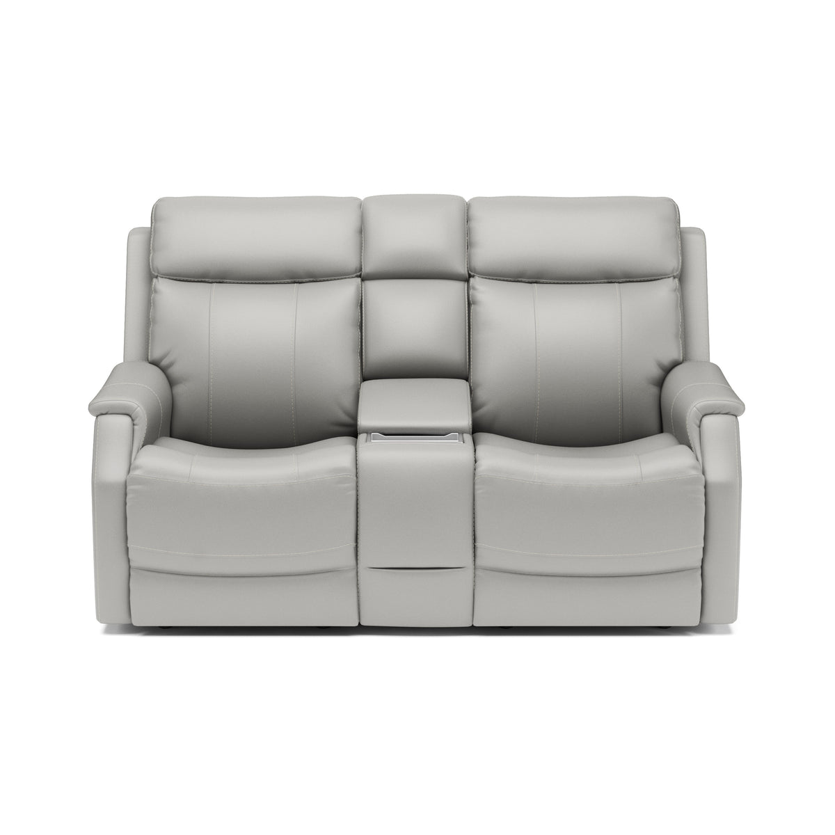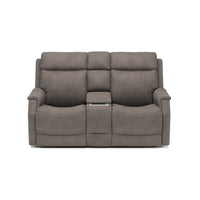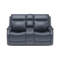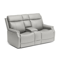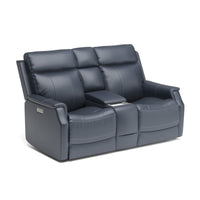 Keep everything you need for a relaxing night in close at hand with the Easton Loveseat with Console and Power Headrests and Lumbar. Designed for your convenience, this ergonomic loveseat has a storage console with beverage holders and plenty of space to keep remotes and personal items. Personalize your experience with an easy-to-access power control on the side of either arm that allows both people sitting to independently adjust the recline and headrests. With a USB charging port built into the power controls, you won’t have to worry about keeping devices powered up. Additional enhancements include lower lumbar support, which you can adjust with the power controls, plush, high-divide back cushions, padded sloped track arms and thick, luxurious seat cushions. Our patented Flexsteel DualFlex Spring System™ offers a mix of firmness and flexibility as you sit and ensures that the loveseat will stay comfortable for years to come. Choose from several durable, cleanable fabric or premium leather options to create a look that blends with your home décor.