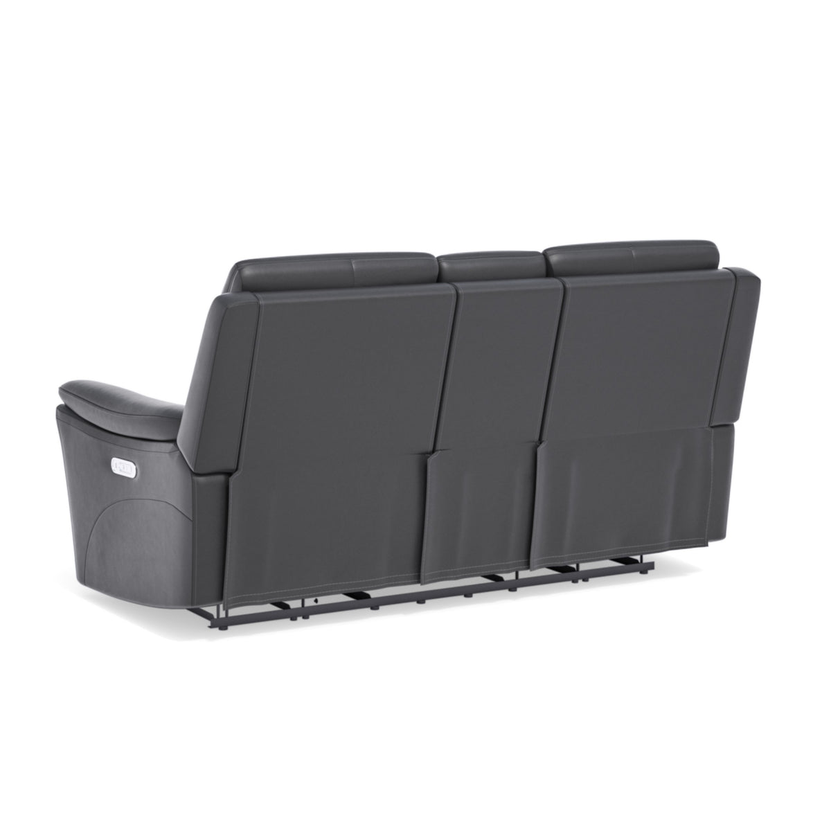 Whether you’re stretching out for a snooze or sitting with a loved one, the Fallon power reclining loveseat with console and power headrests has all the comfort you need to unwind. To find the ideal position for relaxation, both people sitting can independently adjust the headrests and recline with power controls located in the arms. A convenient center console keeps drinks and snacks handy, while built-in USB charging ports in both arms keep devices powered up and ready to stream. Our patented Flexsteel DualFlex Spring System™ ensures quality that will last, along with a just-right mix of firmness and support as you sit. With refined details including our premium leather upholstery, this loveseat will be a beautiful and comforting addition to your living room.
