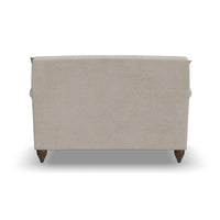 The perfect elegant piece to accentuate your home, the picturesque petite roll arms of the Stella loveseat invite you in. Take a seat atop removable and reversible cushions that are supported by our patented Blue Steel Spring system – backed by our lifetime guarantee. Handcrafted with a durable frame and upholstered with careful detail, Stella is designed to last. The tight back and turned wood legs give this quaint loveseat a modern flair. And with two accent pillows in your choice of fabric, elevate your home with the chic style of Stella.