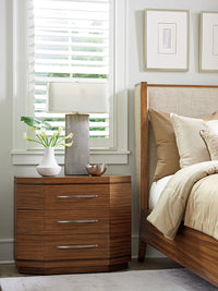 This nightstand makes a great design statement in the bedroom, blending generous storage with a unique canted-front design. Each of the three oversized drawers offer the capacity of a standard dresser drawer, offering great flexibility in arranging the room.