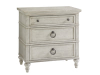 This nightstand features custom ring pulls and turned legs giving it a casual elegance, while its three drawers offer ample storage.