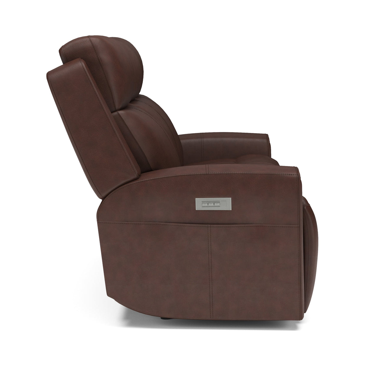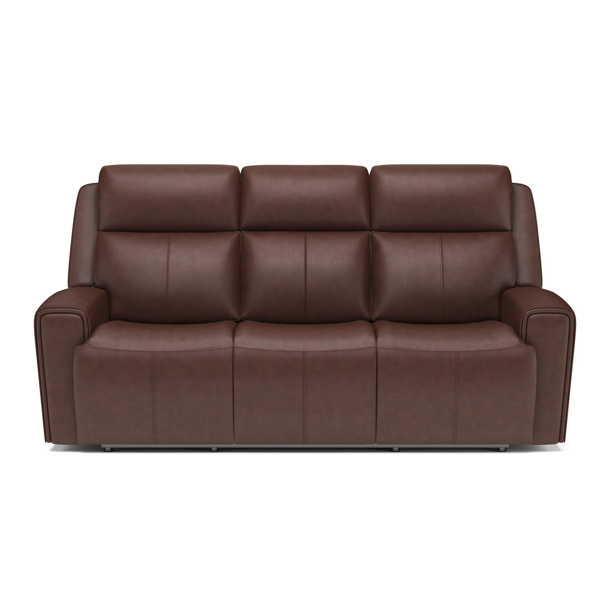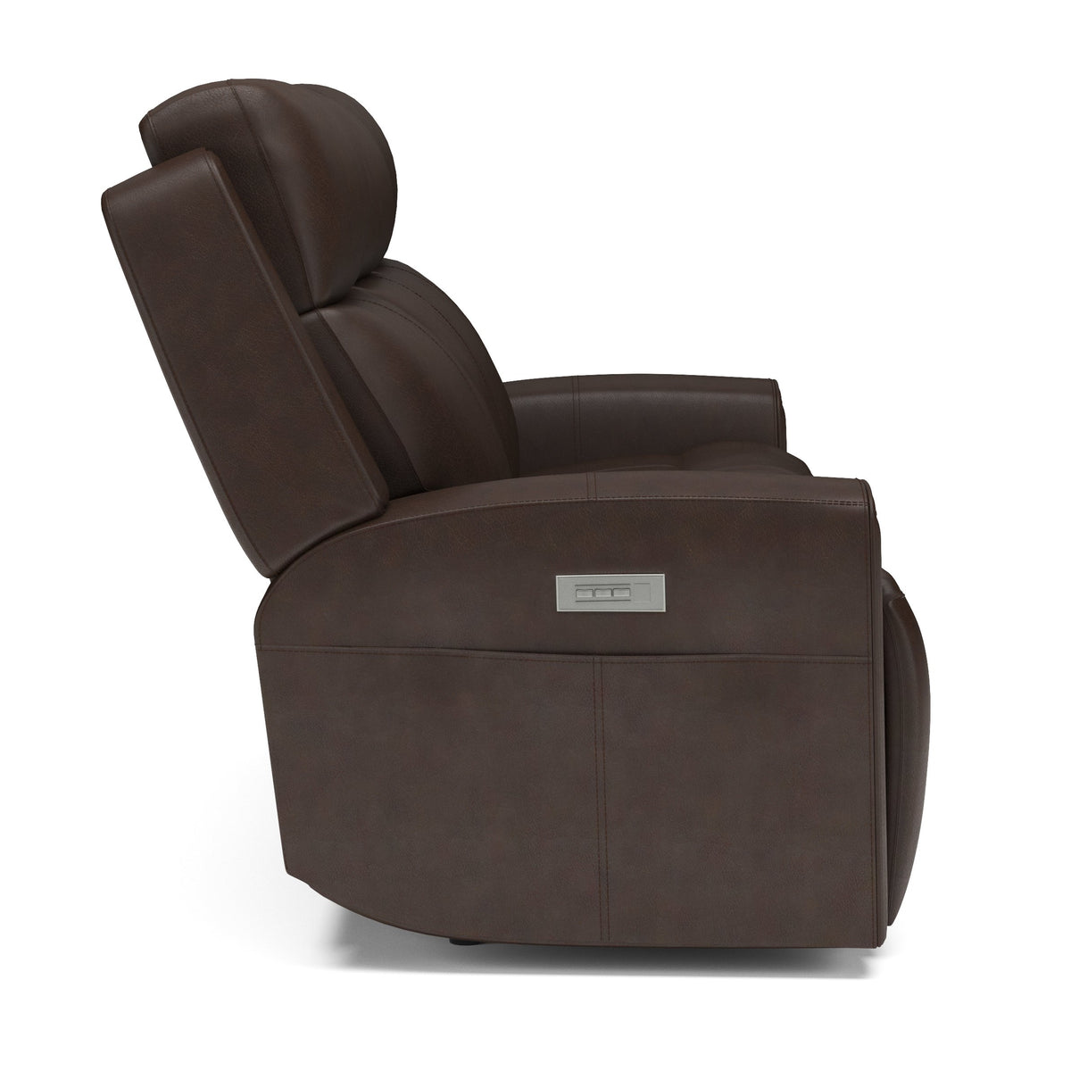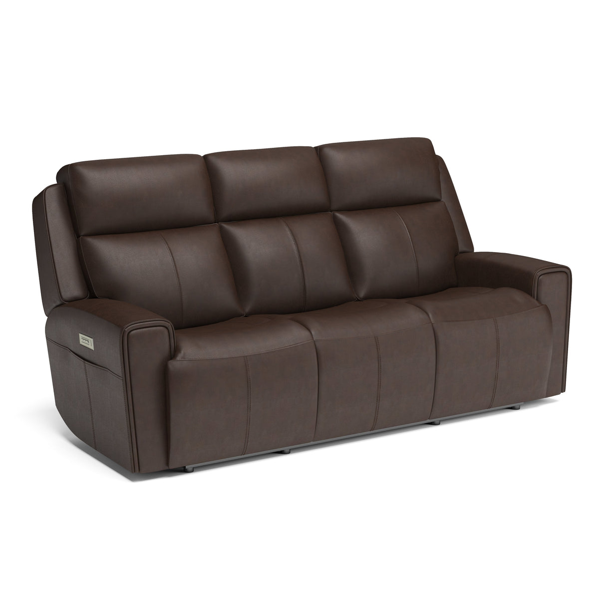 Make your living room the place to be with the comfortable and spacious Barnett power reclining sofa with power headrests and power lumbar. The whole family can relax together and enjoy a feeling of weightlessness with the loveseat’s Zero Gravity recline technology. Easy-to-access power controls on both sides of the sofa allow sitters to independently adjust the recline, headrests and lumbar to find the right level of support for their bodies and moods. Conveniently charge devices without ever needing to get up with a USB port in the power control, and keep remotes close by with handy side pockets. Enjoy ergonomic design details, including generously scaled, contoured seats and waterfall chaise pads that take pressure off the legs and back. Wide track arms with durable top-stitching and attractive welt trim will make this reclining sofa a stylish centerpiece in your home. Upholstered in our premium top-grain leather, this sofa will look good for years to come.