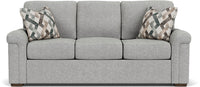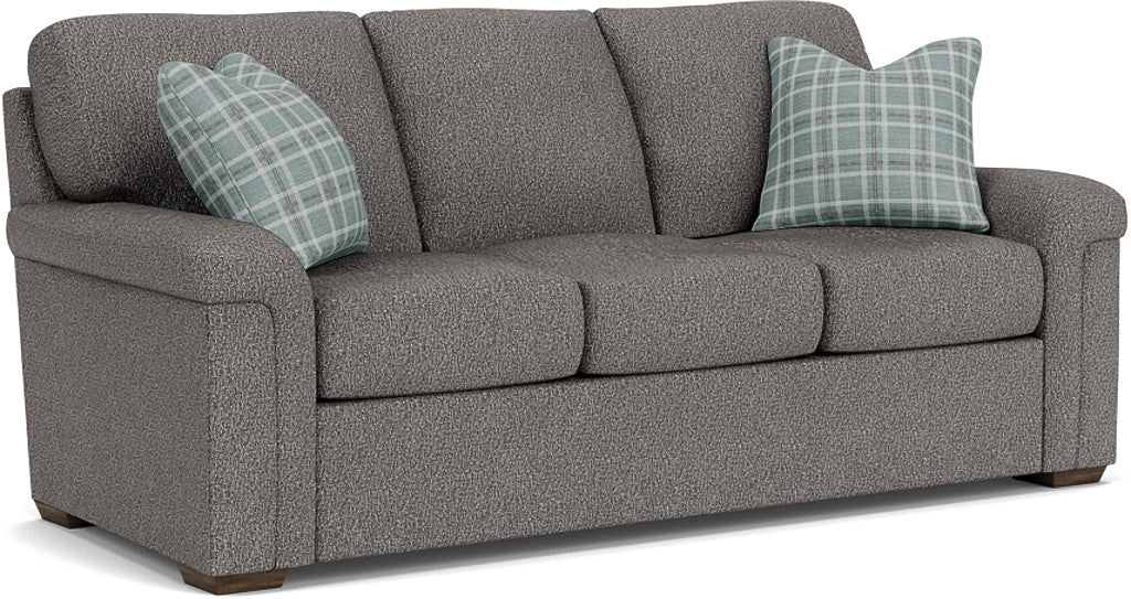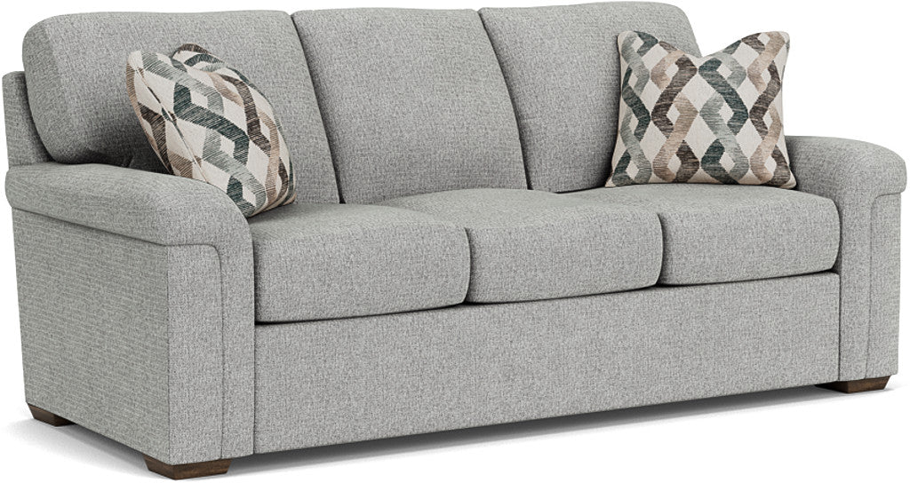 The transitional design of the Blanchard Sofa masters the mix of real style and real life. Ample, well-constructed cushions inspire rest and relaxation. Seat cushions are reversible to preserve cushion shape and extend fabric life. A bold square, tapered block leg offers a modern touch. And two throw pillows add a touch of color.