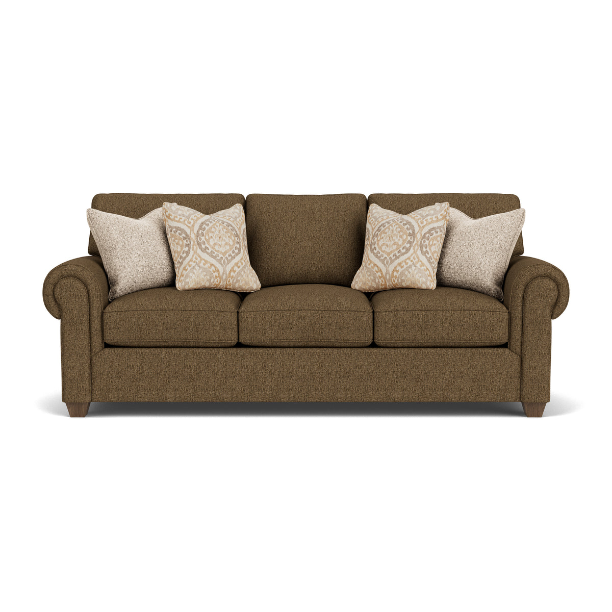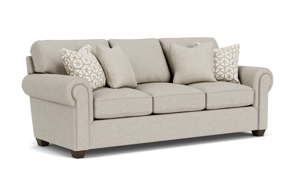 A unique wrap-around padded armrest on Carson’s large-scale rolled arm is highlighted with pleats and welt cording. Optional nailhead trim tightly spaced lines the exposed arm fronts for a fun, visual effect. Relax into Carson’s overstuffed seat and back cushions after a long day and feel the stress melt away.
