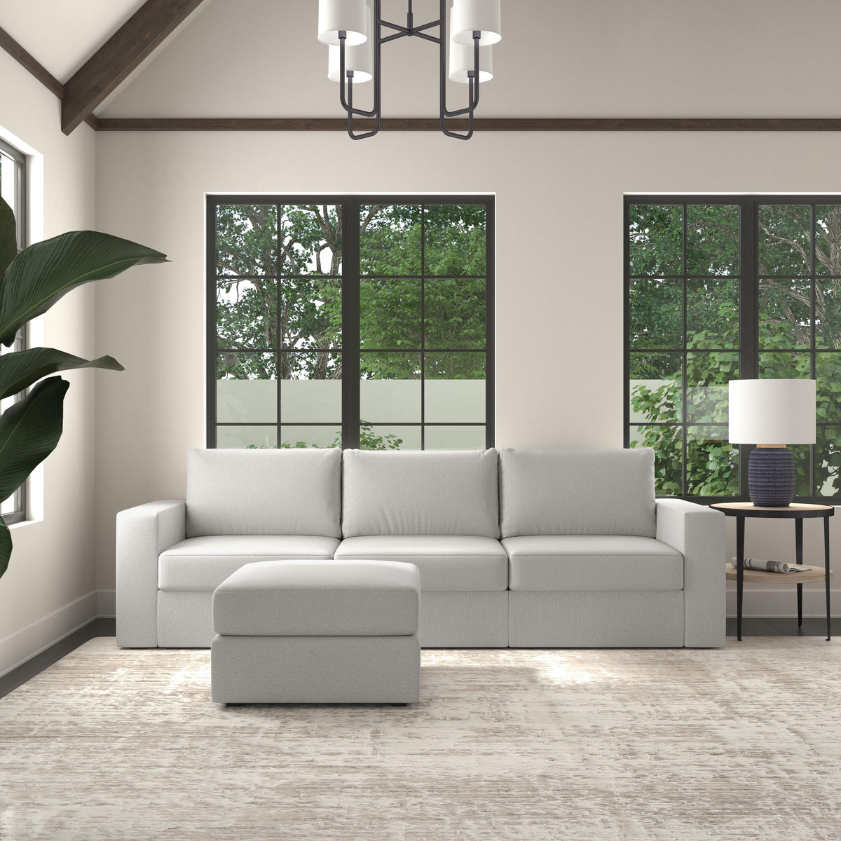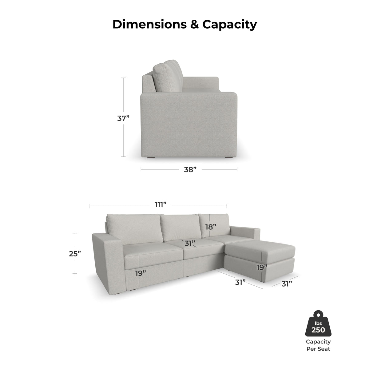 Designed for a lifetime of flexibility, the Flex sofa with ottoman makes the perfect gathering spot for relaxing and the ottoman can be a standalone piece or pushed up against one end to make a chaise lounge. Easily expand and reconfigure the sofa as needs change. Built with Blue Steel Spring technology and sustainable stain-resistant performance fabric, the Flex sofa provides deep-seated, blissful comfort and long-lasting durability. And assembly is a breeze with a patented J-bracket “no-tool” method that takes minutes, rather than hours.