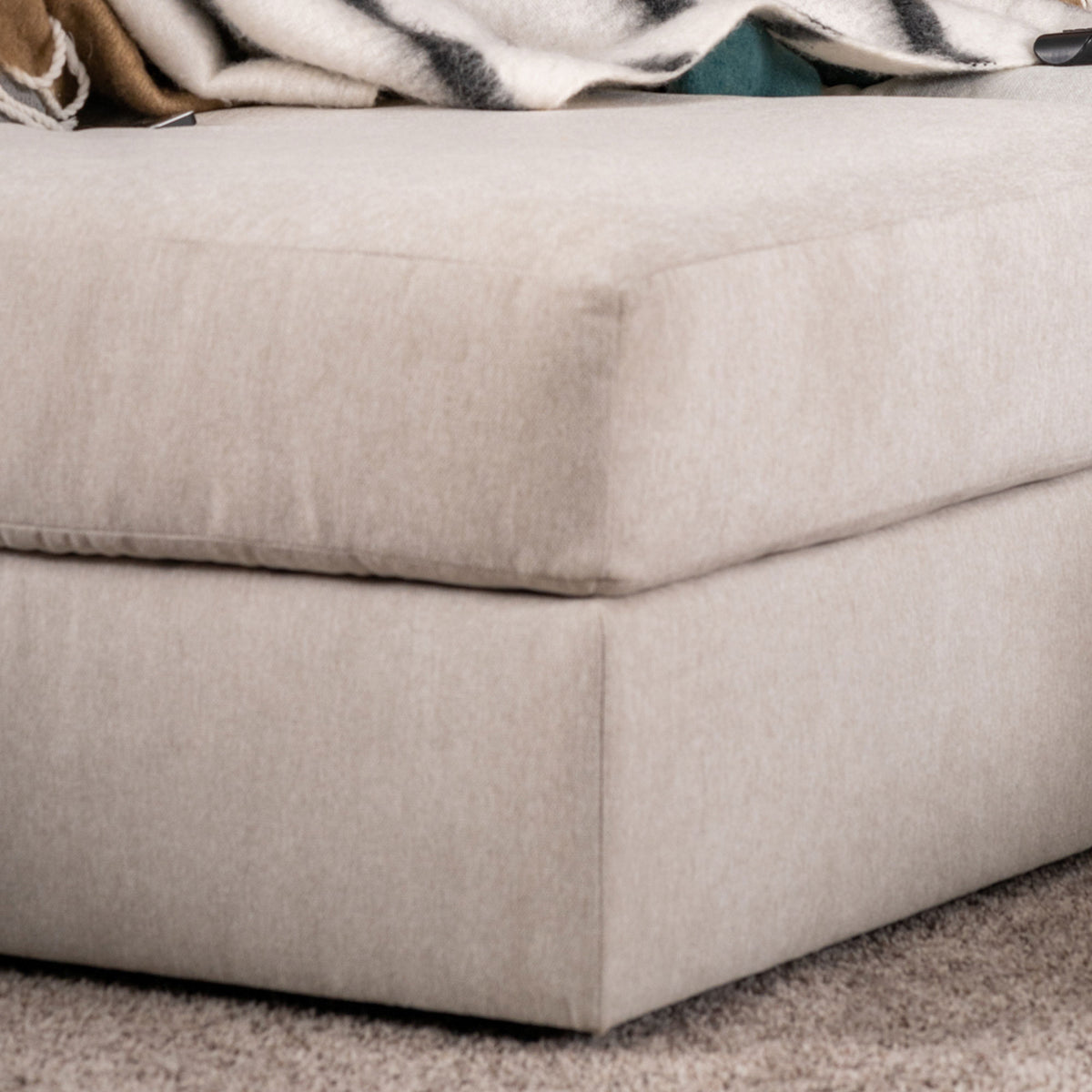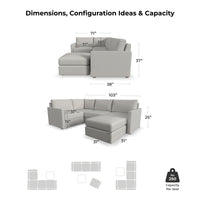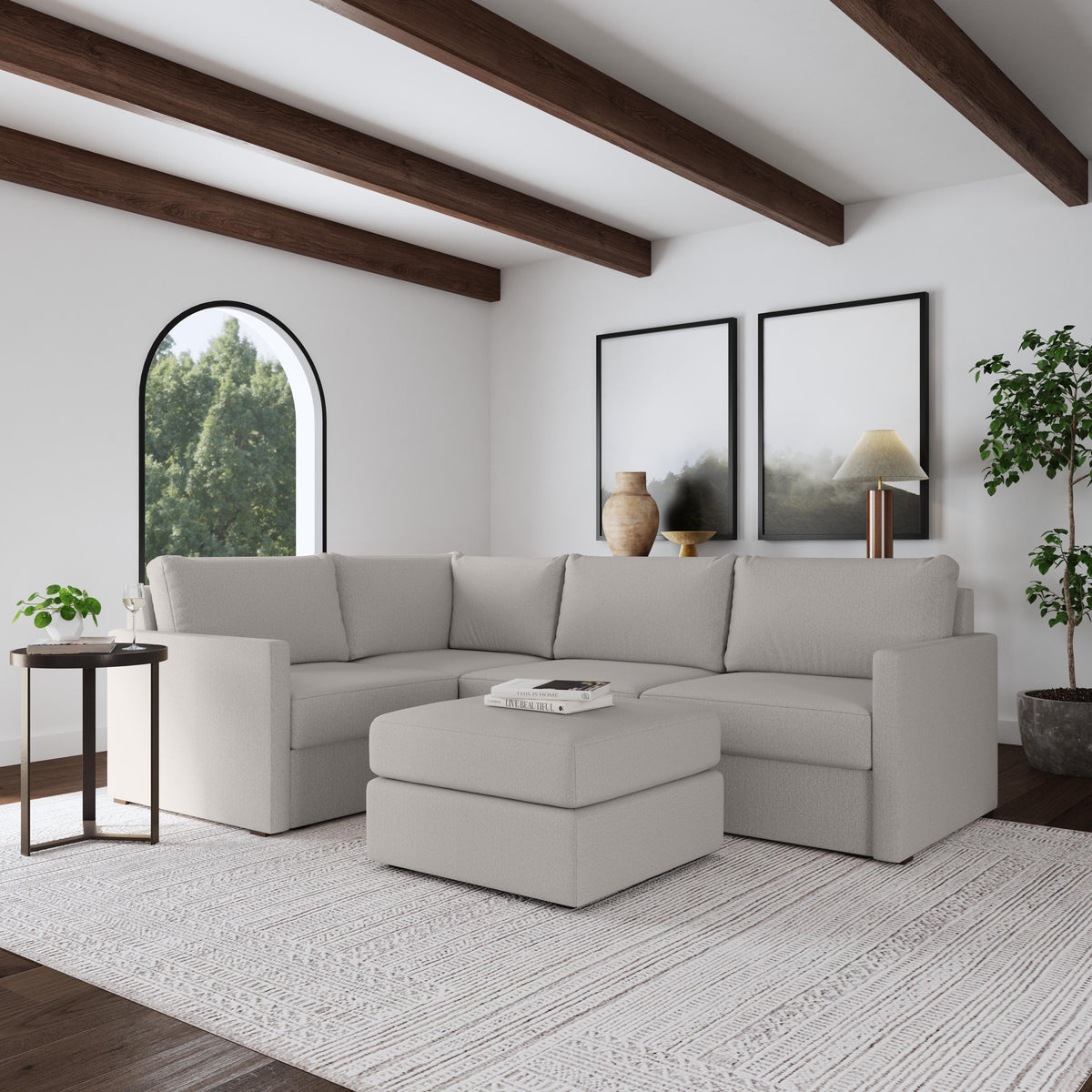 Designed for a lifetime of flexibility, the Flex 4-seat sectional with ottoman can easily contract or expand as your needs change. Use the ottoman as a standalone piece or combine with other the other modular components to create the perfect seating configuration for your space. Built with Blue Steel Spring technology and sustainable, stain-resistant performance fabric, Flex seating provides deep-seated, blissful comfort and long-lasting livability. And assembly is a breeze with a patented J-bracket “no-tool” method that takes minutes, rather than hours.