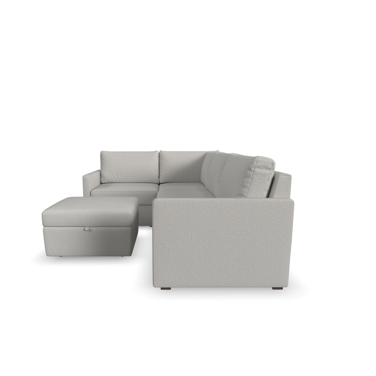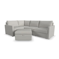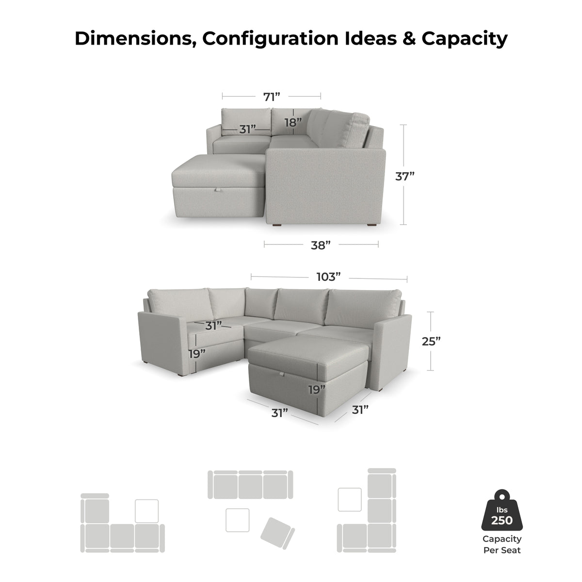 Designed for a lifetime of flexibility, the Flex 4-seat sectional with storage ottoman can easily contract or expand as your needs change. Use the ottoman as a standalone piece or combine with other the other modular components to create the perfect seating configuration for your space. Built with Blue Steel Spring technology and sustainable, stain-resistant performance fabric, Flex seating provides deep-seated, blissful comfort and long-lasting livability. And assembly is a breeze with a patented J-bracket “no-tool” method that takes minutes, rather than hours.