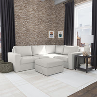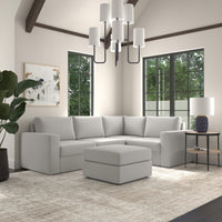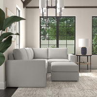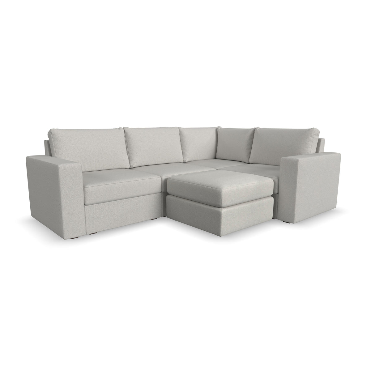 Designed for a lifetime of flexibility, the Flex 4-seat sectional with ottoman can easily contract or expand as your needs change. Use the ottoman as a standalone piece or combine with other the other modular components to create the perfect seating configuration for your space. Built with Blue Steel Spring technology and sustainable, stain-resistant performance fabric, Flex seating provides deep-seated, blissful comfort and long-lasting livability. And assembly is a breeze with a patented J-bracket “no-tool” method that takes minutes, rather than hours.