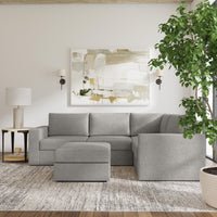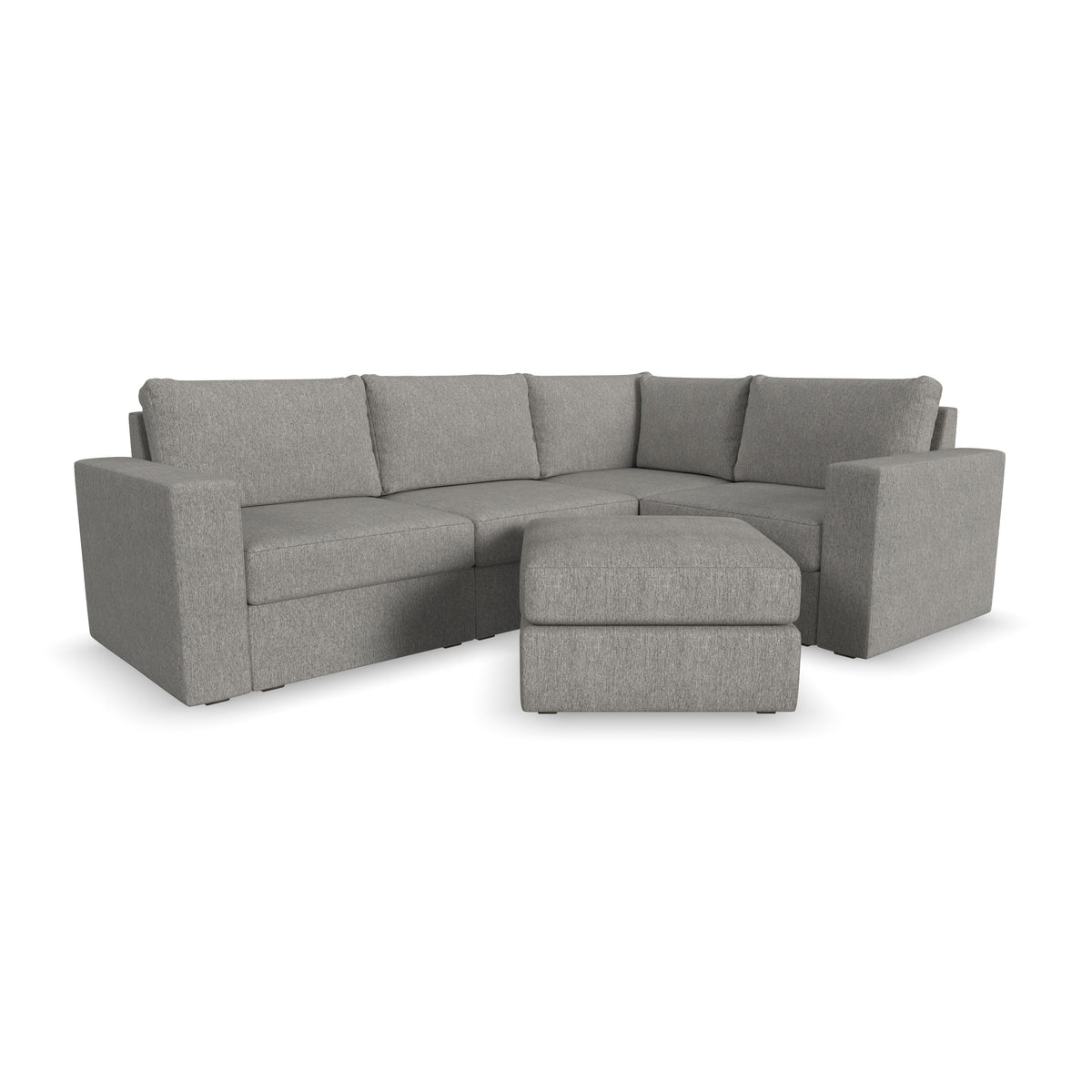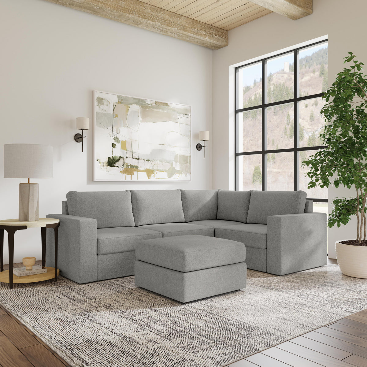 Designed for a lifetime of flexibility, the Flex 4-seat sectional with ottoman can easily contract or expand as your needs change. Use the ottoman as a standalone piece or combine with other the other modular components to create the perfect seating configuration for your space. Built with Blue Steel Spring technology and sustainable, stain-resistant performance fabric, Flex seating provides deep-seated, blissful comfort and long-lasting livability. And assembly is a breeze with a patented J-bracket “no-tool” method that takes minutes, rather than hours.
