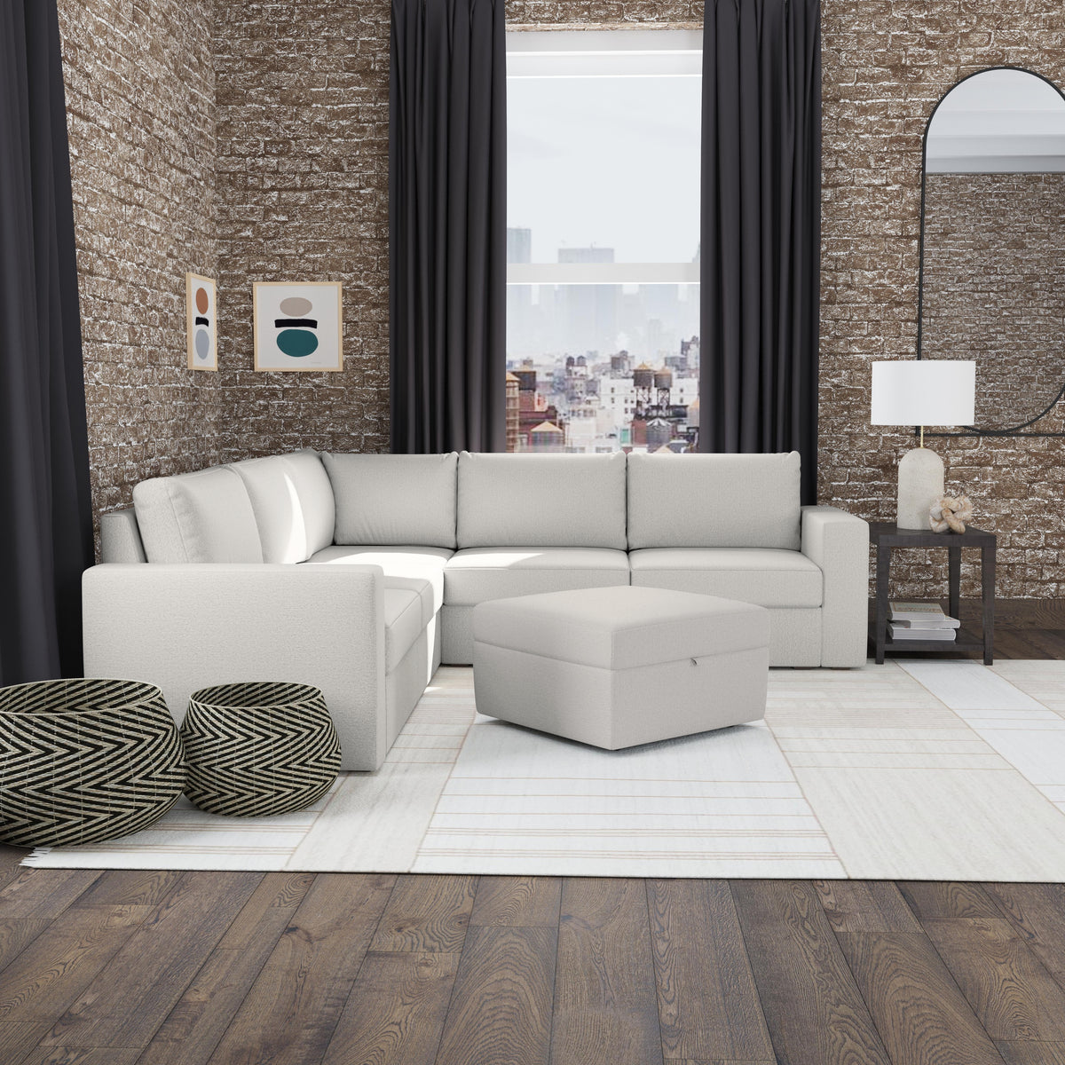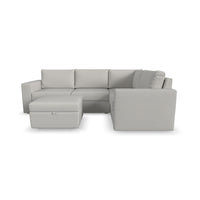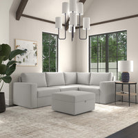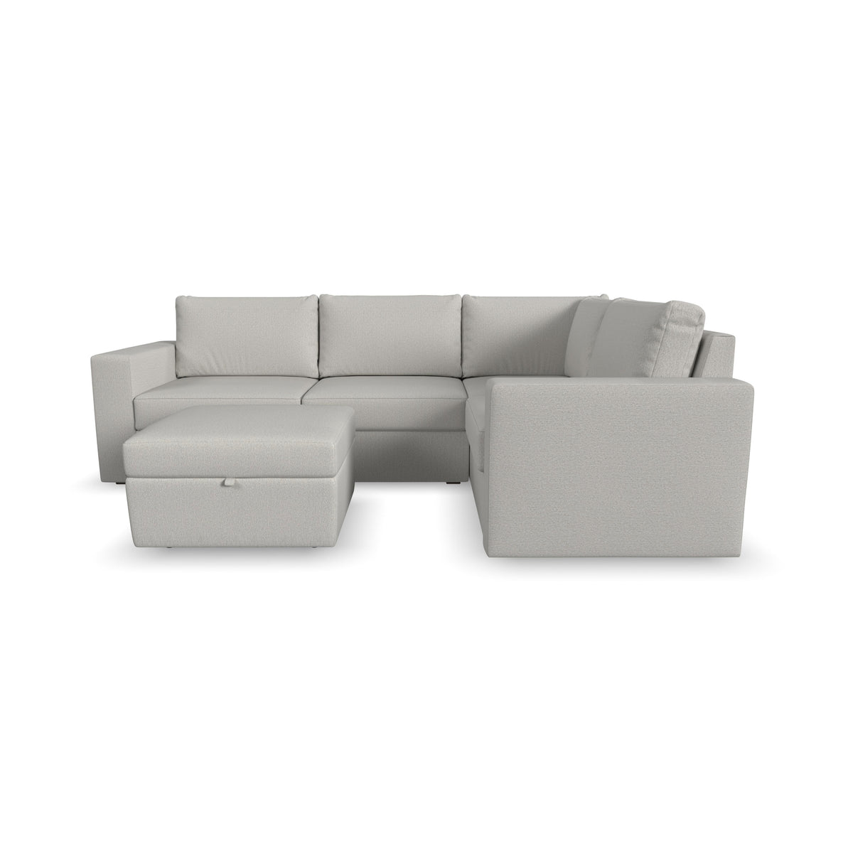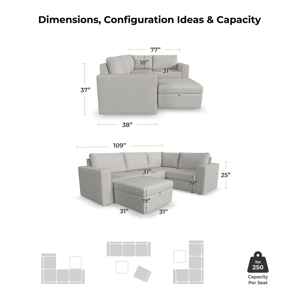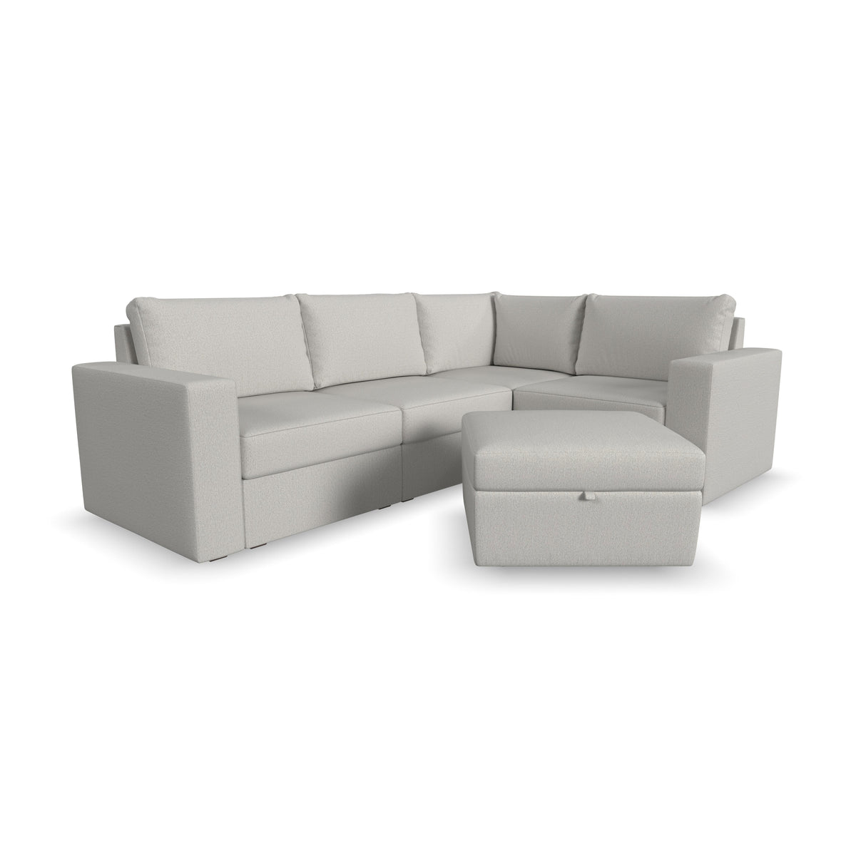 Designed for a lifetime of flexibility, the Flex 4-seat sectional with storage ottoman can easily contract or expand as your needs change. Use the ottoman as a standalone piece or combine with other the other modular components to create the perfect seating configuration for your space. Built with Blue Steel Spring technology and sustainable, stain-resistant performance fabric, Flex seating provides deep-seated, blissful comfort and long-lasting livability. And assembly is a breeze with a patented J-bracket “no-tool” method that takes minutes, rather than hours.
