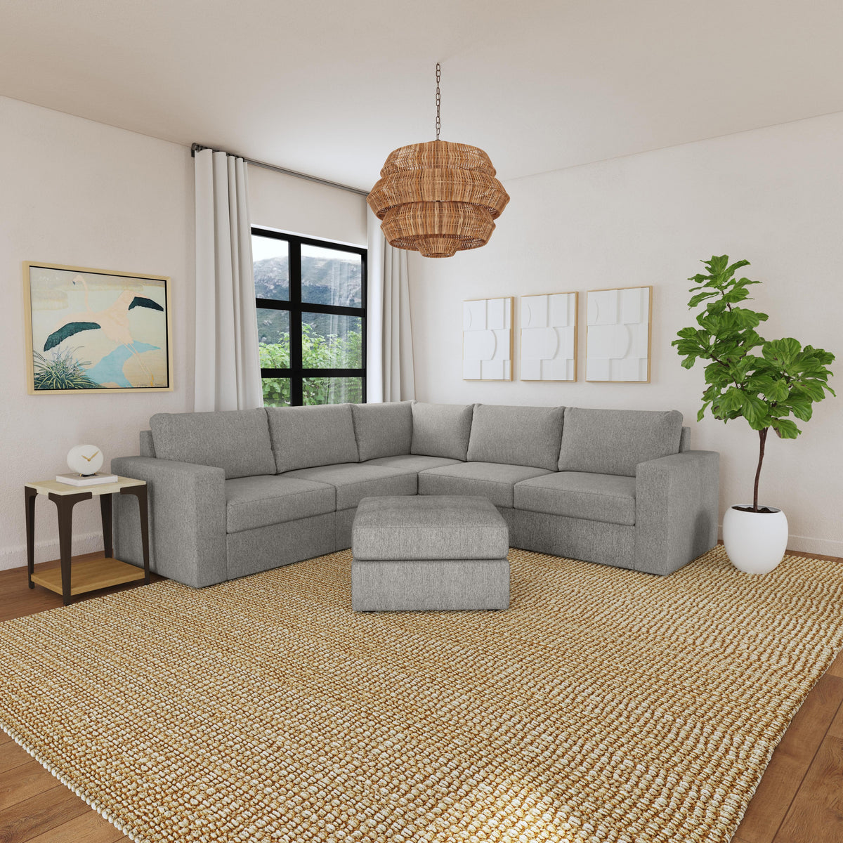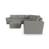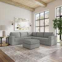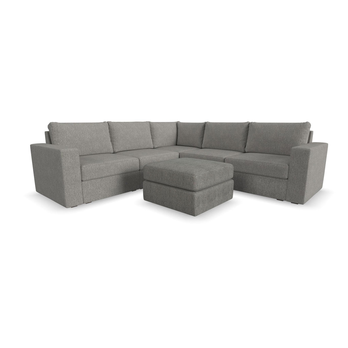 Designed for a lifetime of flexibility, the Flex 5-seat sectional with ottoman can easily contract or expand as your needs change. Use the ottoman as a standalone piece or combine with other the other modular components to create the perfect seating configuration for your space. Built with Blue Steel Spring technology and sustainable, stain-resistant performance fabric, Flex seating provides deep-seated, blissful comfort and long-lasting livability. And assembly is a breeze with a patented J-bracket “no-tool” method that takes minutes, rather than hours.