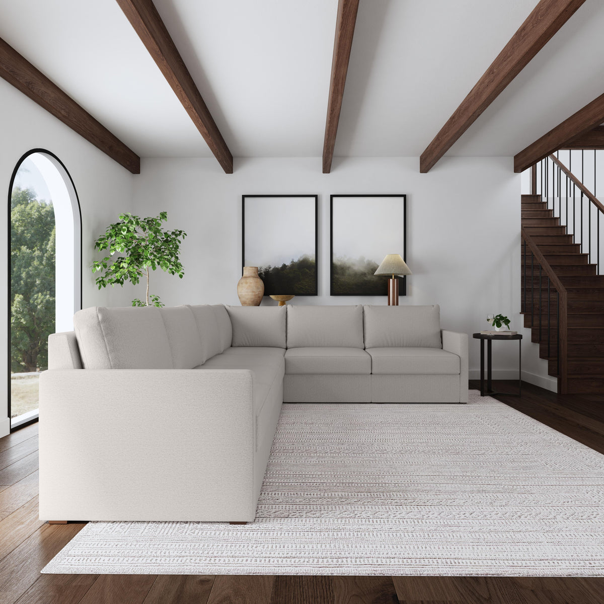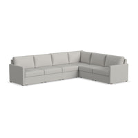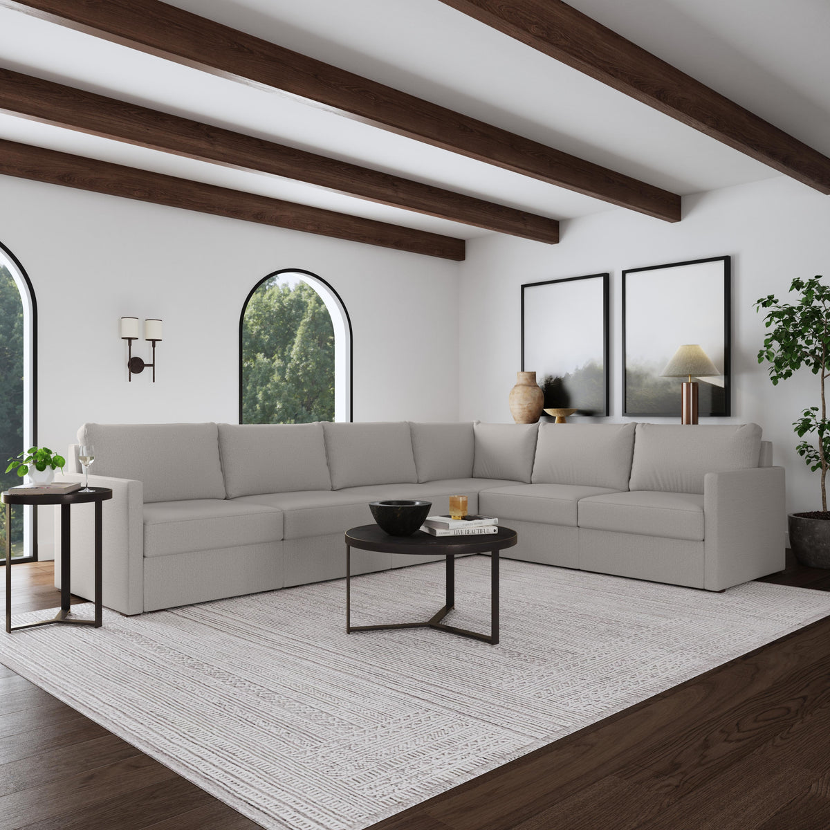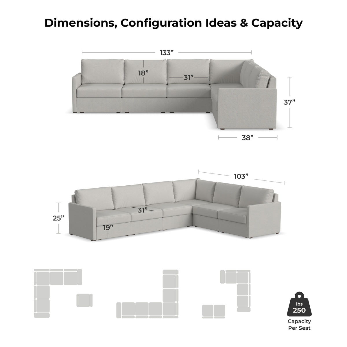 Designed for a lifetime of flexibility, the Flex 6-seat sectional provides the ultimate relaxation zone for gatherings and can be easily reconfigured again and again to create the perfect seating arrangement. Built with Blue Steel Spring technology and sustainable, stain-resistant performance fabric, Flex modular seating provides deep-seated, blissful comfort and long-lasting livability. And assembly is a breeze with a patented J-bracket “no-tool” method that takes minutes, rather than hours.
