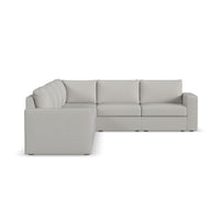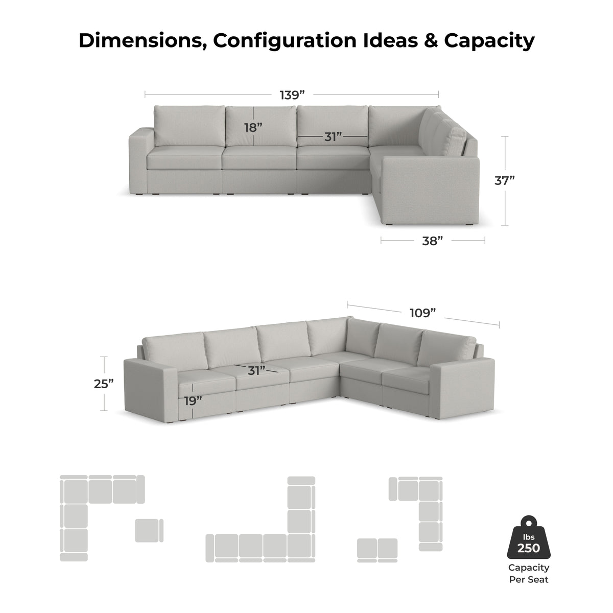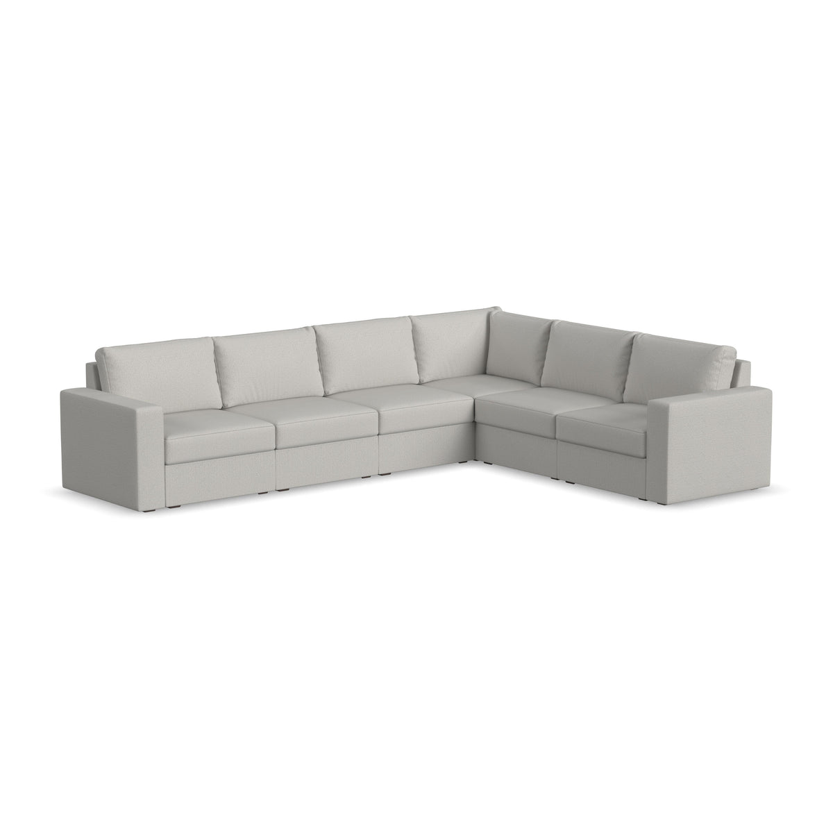 Designed for a lifetime of flexibility, the Flex 6-seat sectional provides the ultimate relaxation zone for gatherings and can be easily reconfigured again and again to create the perfect seating arrangement. Built with Blue Steel Spring technology and sustainable, stain-resistant performance fabric, Flex modular seating provides deep-seated, blissful comfort and long-lasting livability. And assembly is a breeze with a patented J-bracket “no-tool” method that takes minutes, rather than hours.