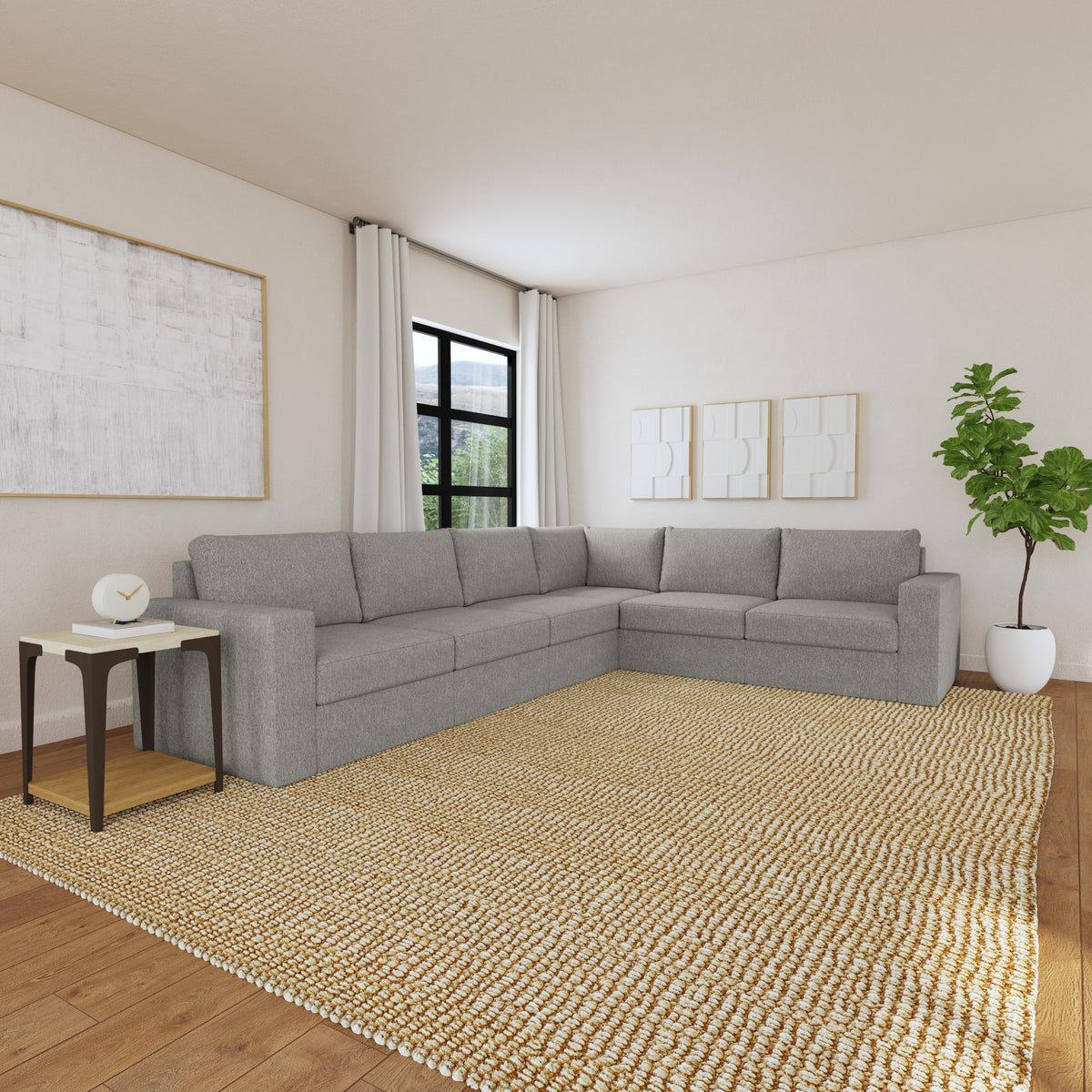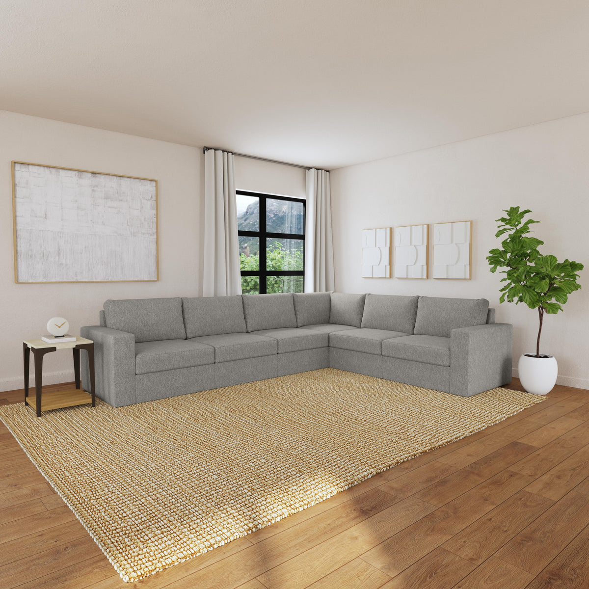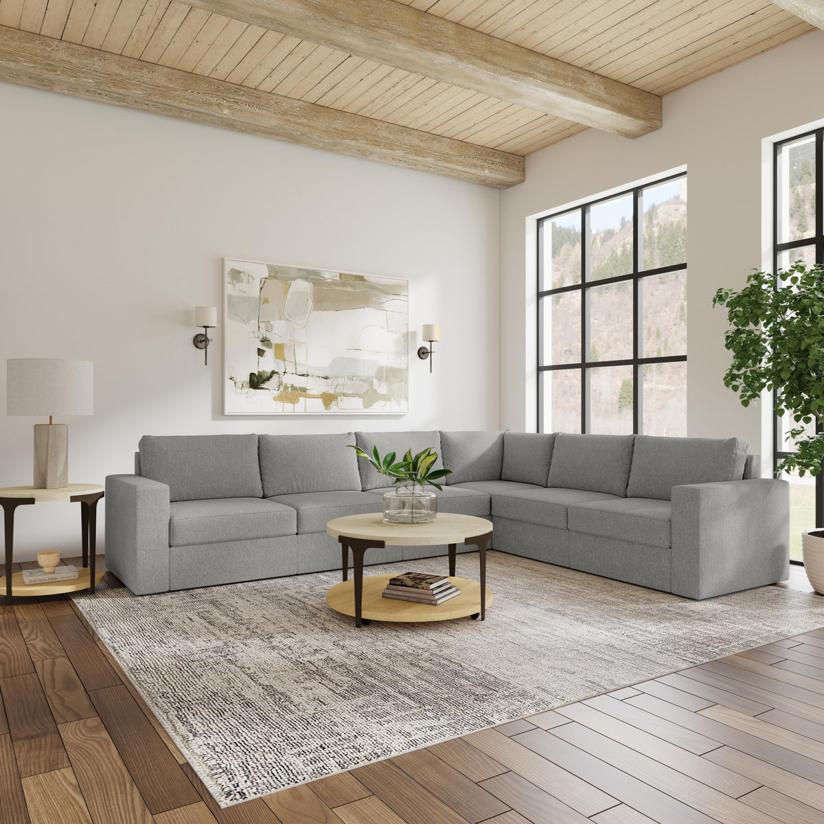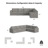 Designed for a lifetime of flexibility, the Flex 6-seat sectional provides the ultimate relaxation zone for gatherings and can be easily reconfigured again and again to create the perfect seating arrangement. Built with Blue Steel Spring technology and sustainable, stain-resistant performance fabric, Flex modular seating provides deep-seated, blissful comfort and long-lasting livability. And assembly is a breeze with a patented J-bracket “no-tool” method that takes minutes, rather than hours.
