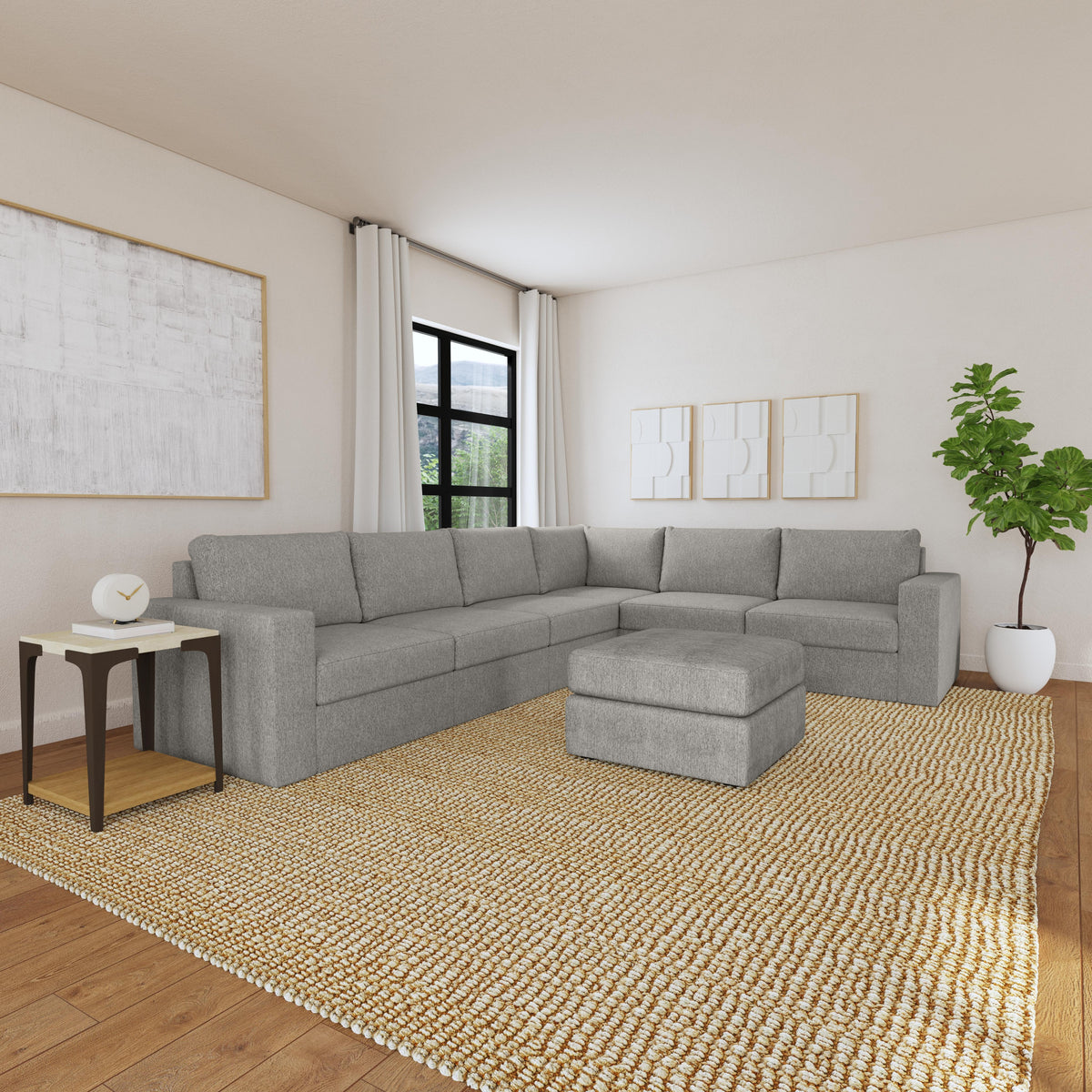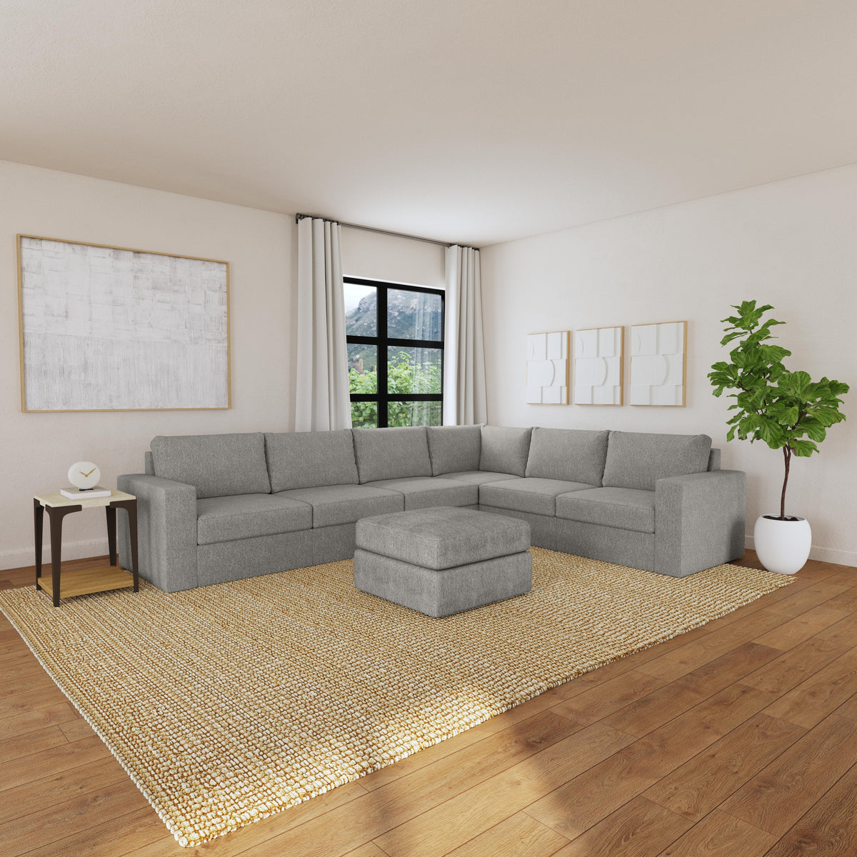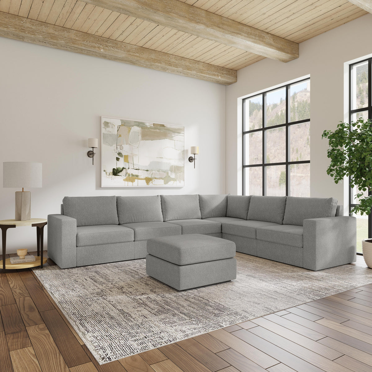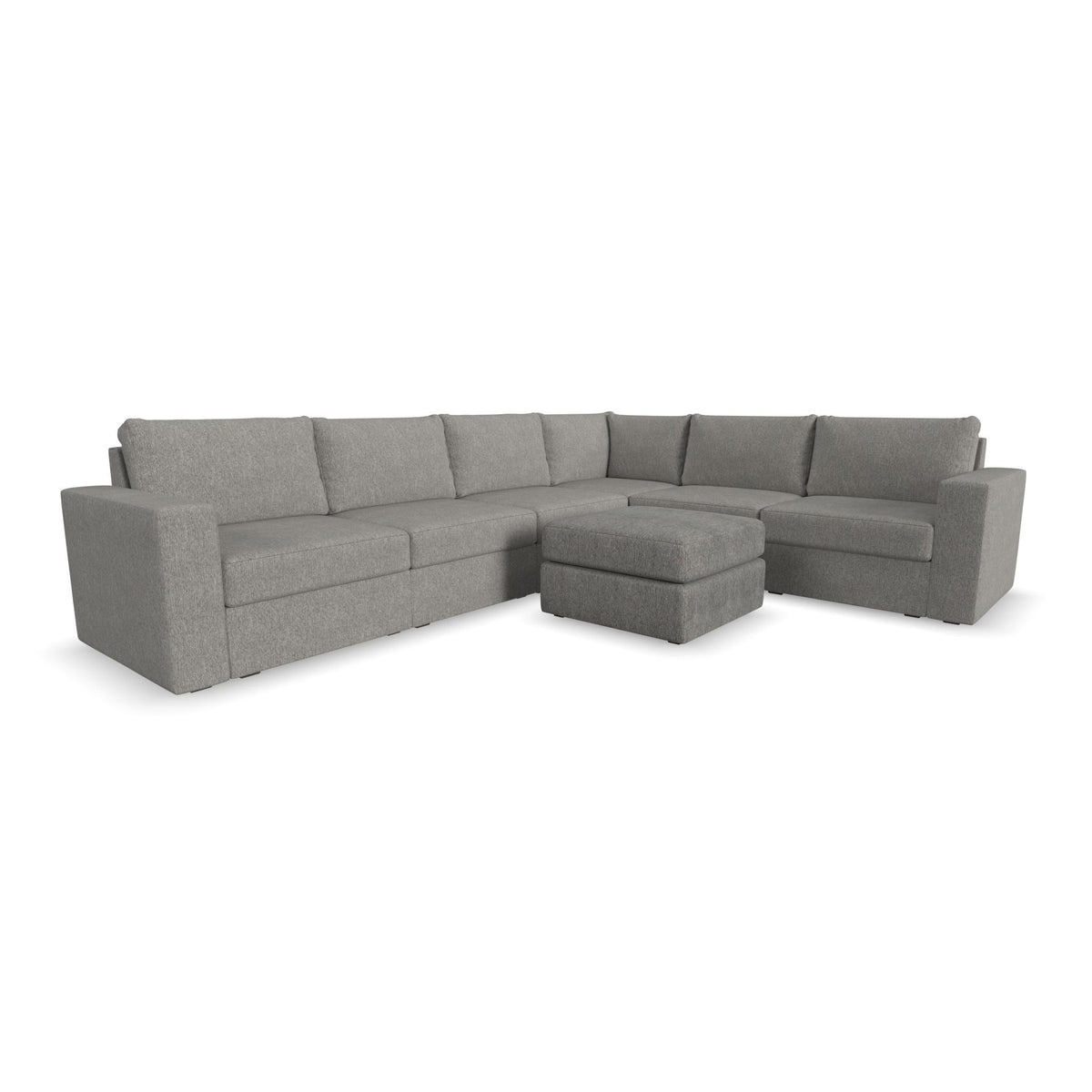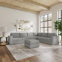 Designed for a lifetime of flexibility, the Flex 6-seat sectional with ottoman delivers reconfigurable relaxation for small and large groups. Use the ottoman as a standalone piece or combine with other the other modular components to create the perfect seating arrangement for your space. Built with Blue Steel Spring technology and sustainable, stain-resistant performance fabric, Flex seating provides deep-seated, blissful comfort and long-lasting livability. And assembly is a breeze with a patented J-bracket “no-tool” method that takes minutes, rather than hours.