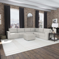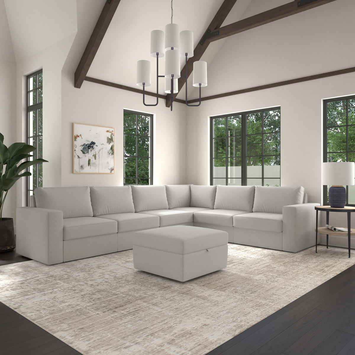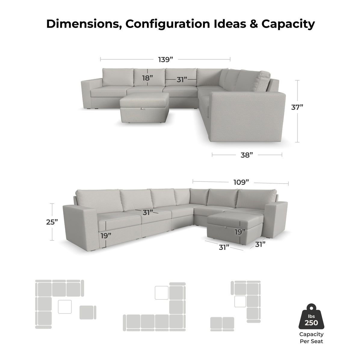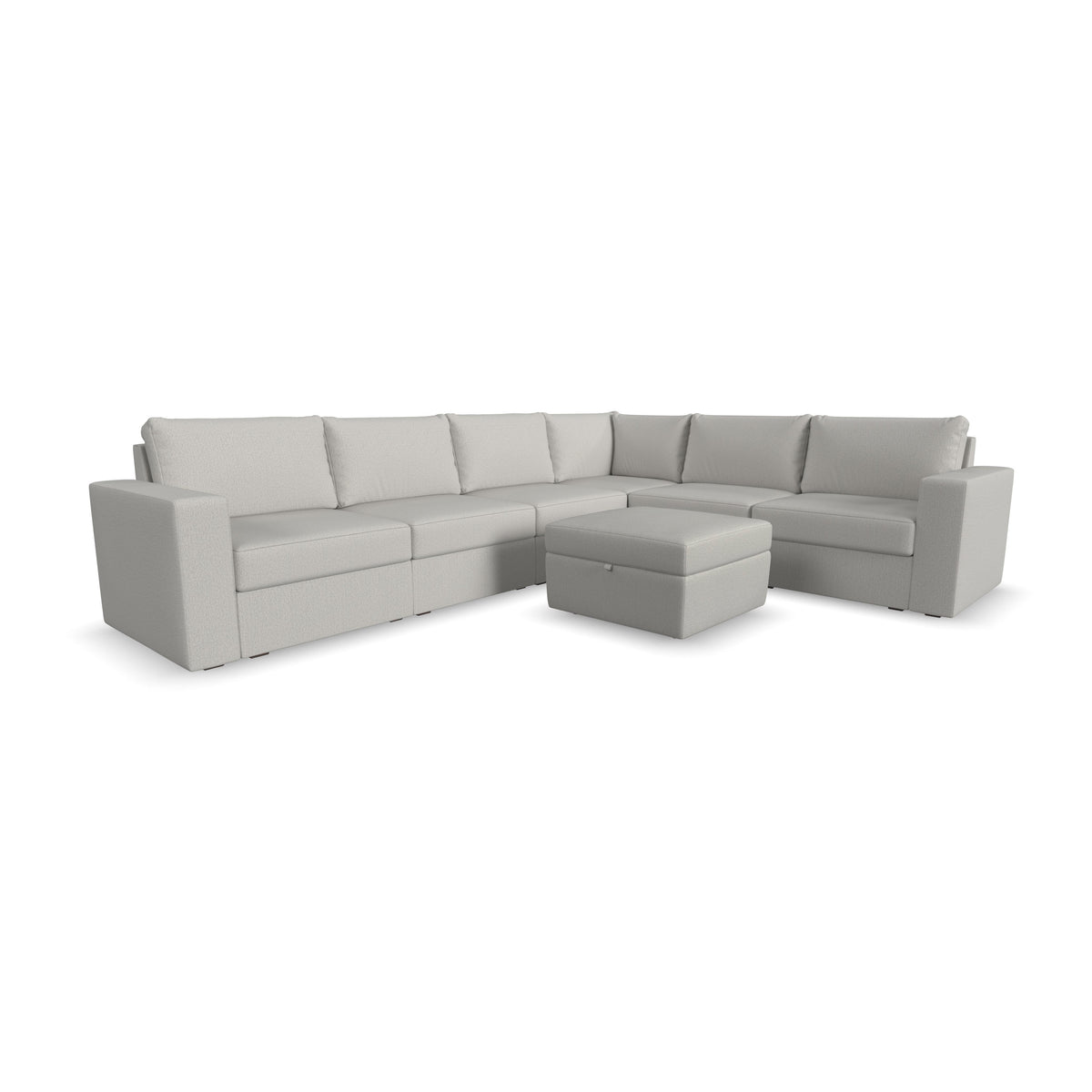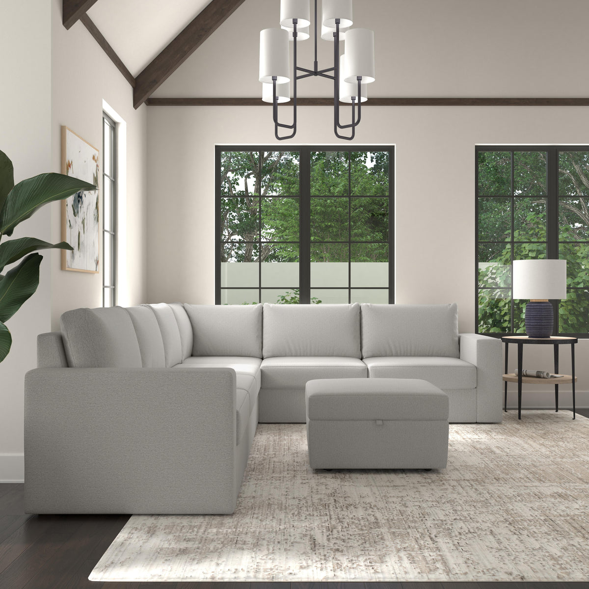 Designed for a lifetime of flexibility, the Flex 6-seat sectional with storage ottoman delivers reconfigurable relaxation for small and large groups. Use the ottoman as a standalone piece or combine with other the other modular components to create the perfect seating arrangement for your space. Built with Blue Steel Spring technology and sustainable, stain-resistant performance fabric, Flex seating provides deep-seated, blissful comfort and long-lasting livability. And assembly is a breeze with a patented J-bracket “no-tool” method that takes minutes, rather than hours.
