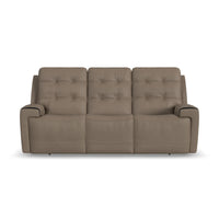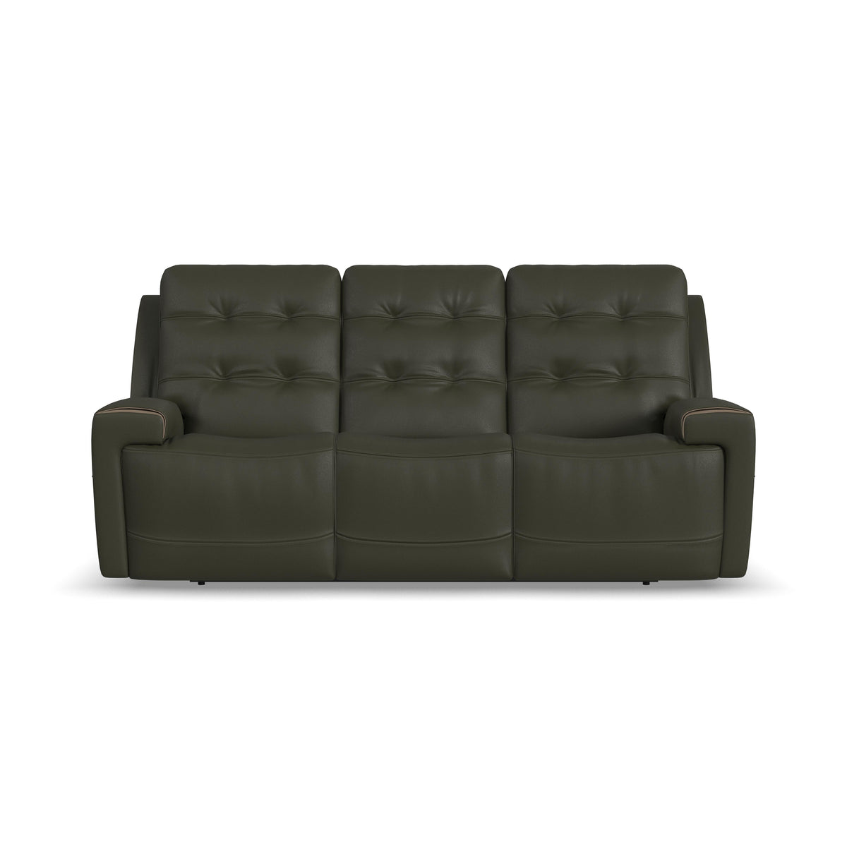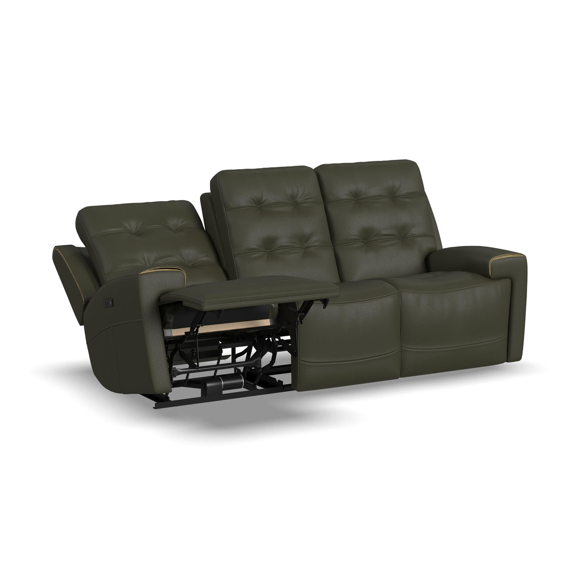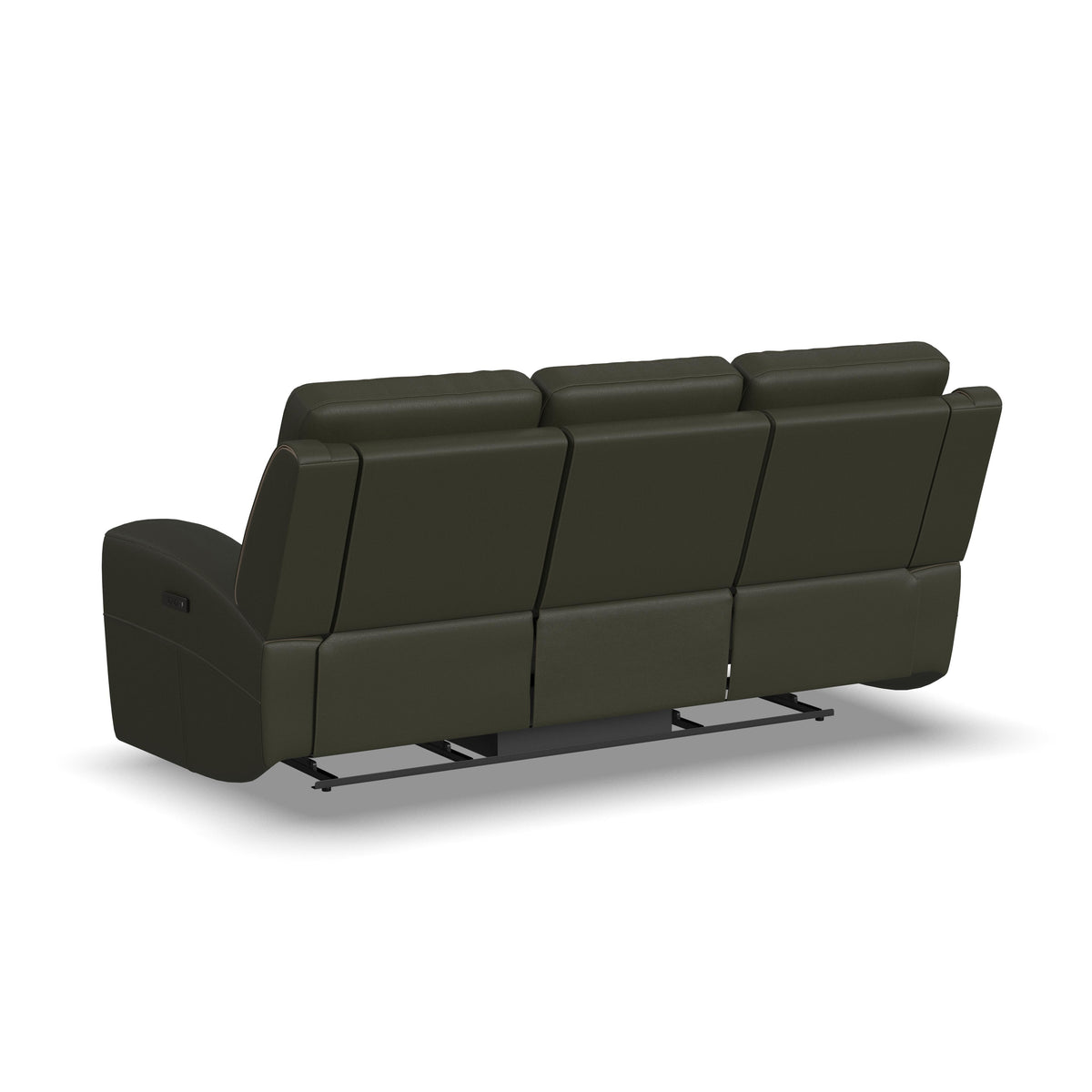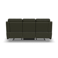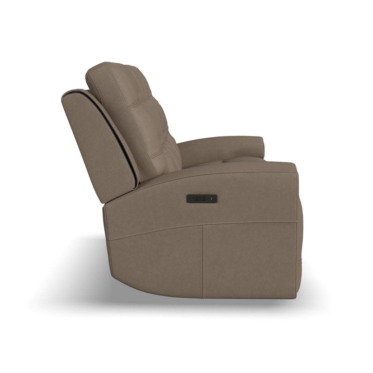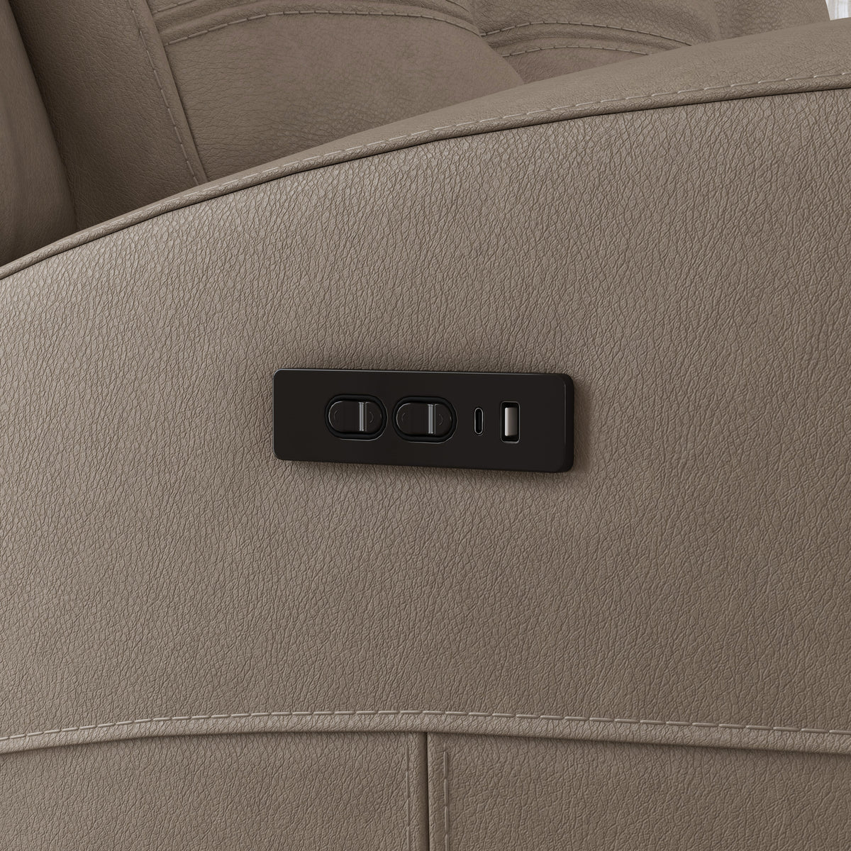 See and feel the difference that thoughtful details make with the Iris power reclining sofa. This sofa offers adjustable comfort on the two outside seats with a dual power recline mechanism that allows you to independently adjust the headrests for custom relaxation. Zero Gravity technology reduces pressure on the body and gives you a feeling of weightlessness, while waterfall chaise footrests and contoured seats provide additional support. Eye-catching details include top-stitched French seams, biscuit tufting on the back and contrast color wrapped seams along the thin pad arms and recessed wings. Upholstered in two color choices of top grain leather for exceptional beauty and durability, Iris also offers convenient USB ports to keep mobile devices charged and ready for streaming.