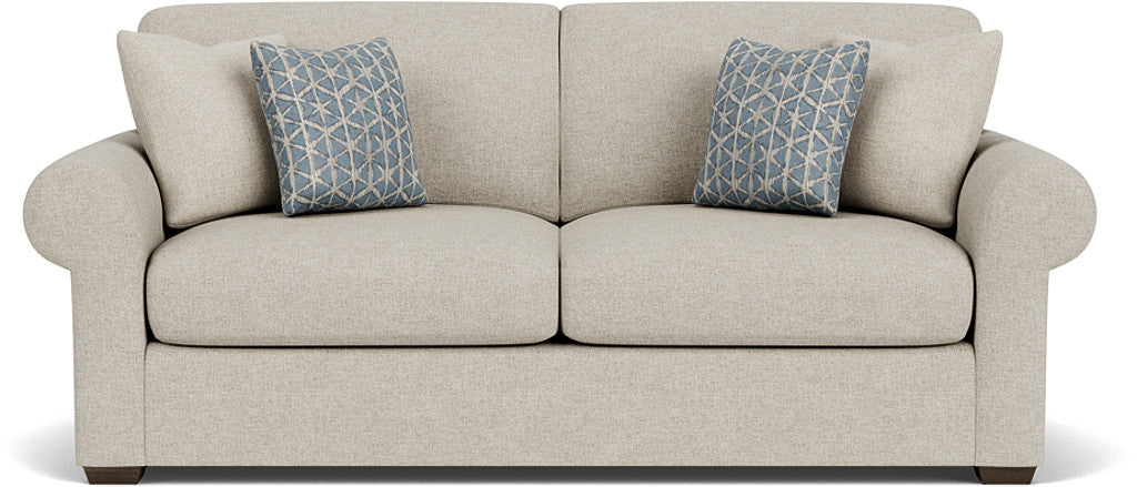 Randall delivers a classic, relaxed design. Large rounded armrests, roomy box seat cushions and a soft pillow back will make it hard to give this seat up. Square tapered legs are casual and stylish, making this sofa a great fit for quiet reading in the den or game day in the family room.