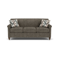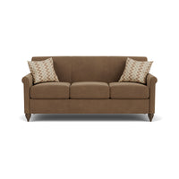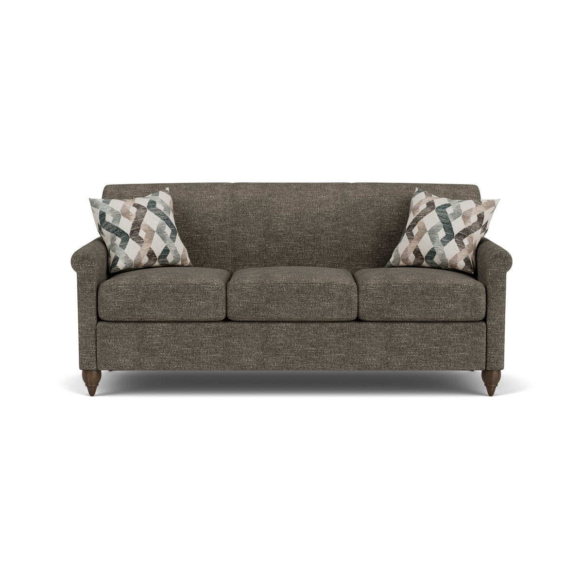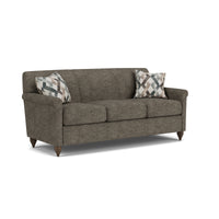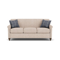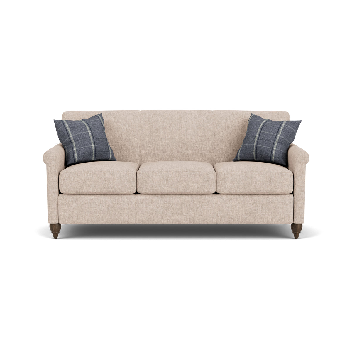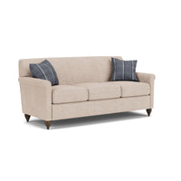 The perfect elegant piece to accentuate your home, the picturesque petite roll arms of the Stella sofa invite you in. Take a seat atop removable and reversible cushions that are supported by our patented Blue Steel Spring system – backed by our lifetime guarantee. Handcrafted with a durable frame and upholstered with careful detail, Stella is designed to last. The tight back and turned wood legs give this quaint sofa a modern flair. And with two accent pillows in your choice of fabric, elevate your home with the chic style of Stella.