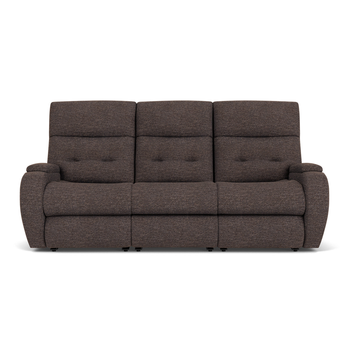 Envelope yourself in the generous and weightless comfort of the Strait Power Sofa with Power Headrests. Dual power allows you and your family to adjust the recline and headrests independently, for the ideal position. The zero-gravity feature ensures an even distribution of weight, to limit the strain on your body. Built to accommodate a wide range of body types, the high back provides ample space to relax. While rich details like biscuit tufting and padded arms provide decorative flair. A USB port, with zero-draw technology, gives you peace of mind while charging devices. Built with our patented Blue Steel Spring, Strait ensures flexibility and support for years to come. With over a hundred fabrics to choose from, Strait can fit in perfectly with existing decor.