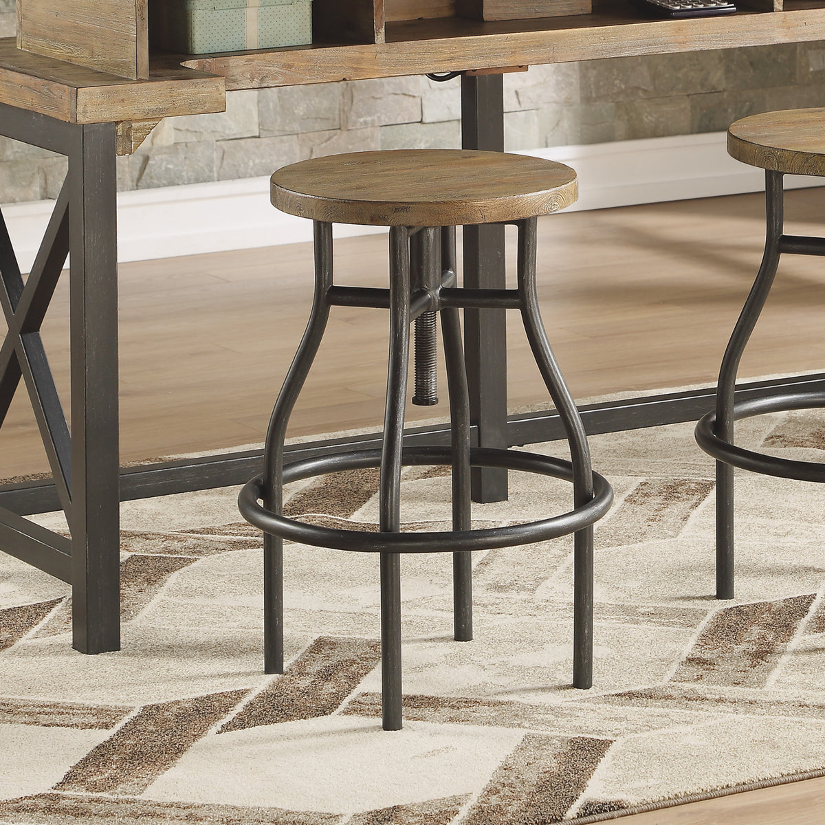 Add counter or bar height seating anywhere in your home with the height-adjustable Carpenter stool, which combines modern rustic style with industrial-inspired character. Height-adjustable for easy personalization, this stool also features a circular footrest so you can comfortably rest your feet, no matter what direction you’re facing. A light brown planked acacia wood seat sits upon metal legs that are treated to resemble aged, oiled steel. This timeless design makes the perfect addition to any kitchen or game room, or pair it with the Carpenter work console for a coordinated look.