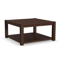 Keep beverages, snacks and reading materials conveniently close at hand with the Boulder square coffee table. Featuring an amply sized planked top with burnished edges and a rich, mid-toned brown finish, this table offers a handcrafted, rustic look that adds character to any living or family room. A lower shelf provides additional space for books or décor, while hidden casters allow easy movement for optimal table placement when entertaining or rearranging.