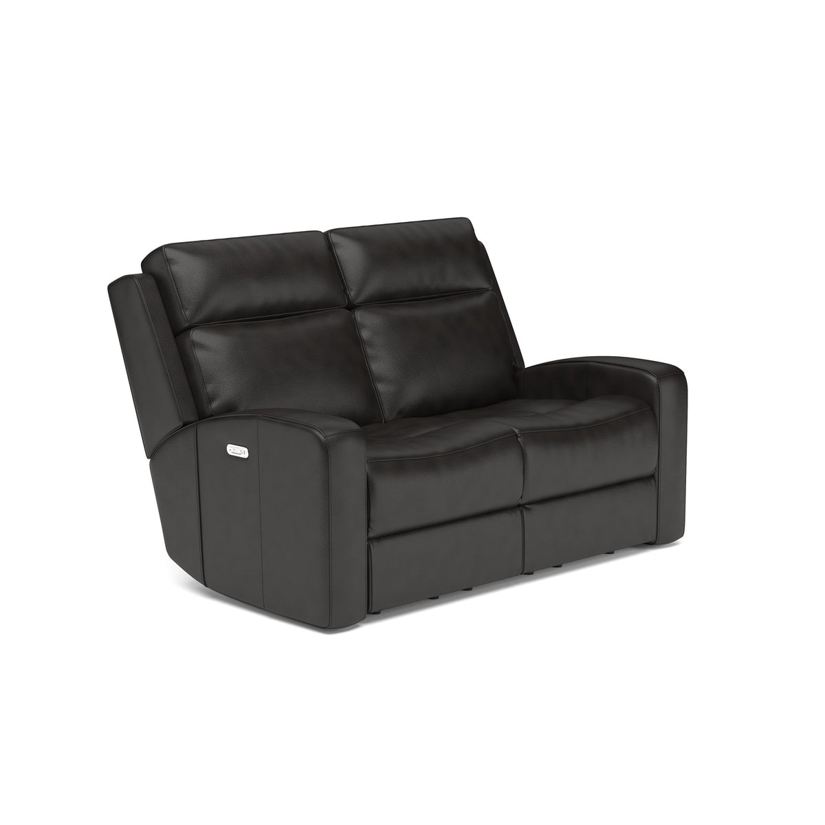 Kick up your feet and enjoy the endless comfort of the Cody Power Reclining Loveseat with Power Headrests. You and a loved one can independently control the angle of the headrest and recline to find the best position for your body with power controls on either side of the loveseat. You’ll never need to worry about durability, thanks to the premium leather upholstery, which will continue to look great even in high-traffic living spaces. Enjoy an expansive range of motion with our patented DualFlex spring system. And don’t worry about getting up to charge your phone—a USB port is built right into the power control for your convenience.