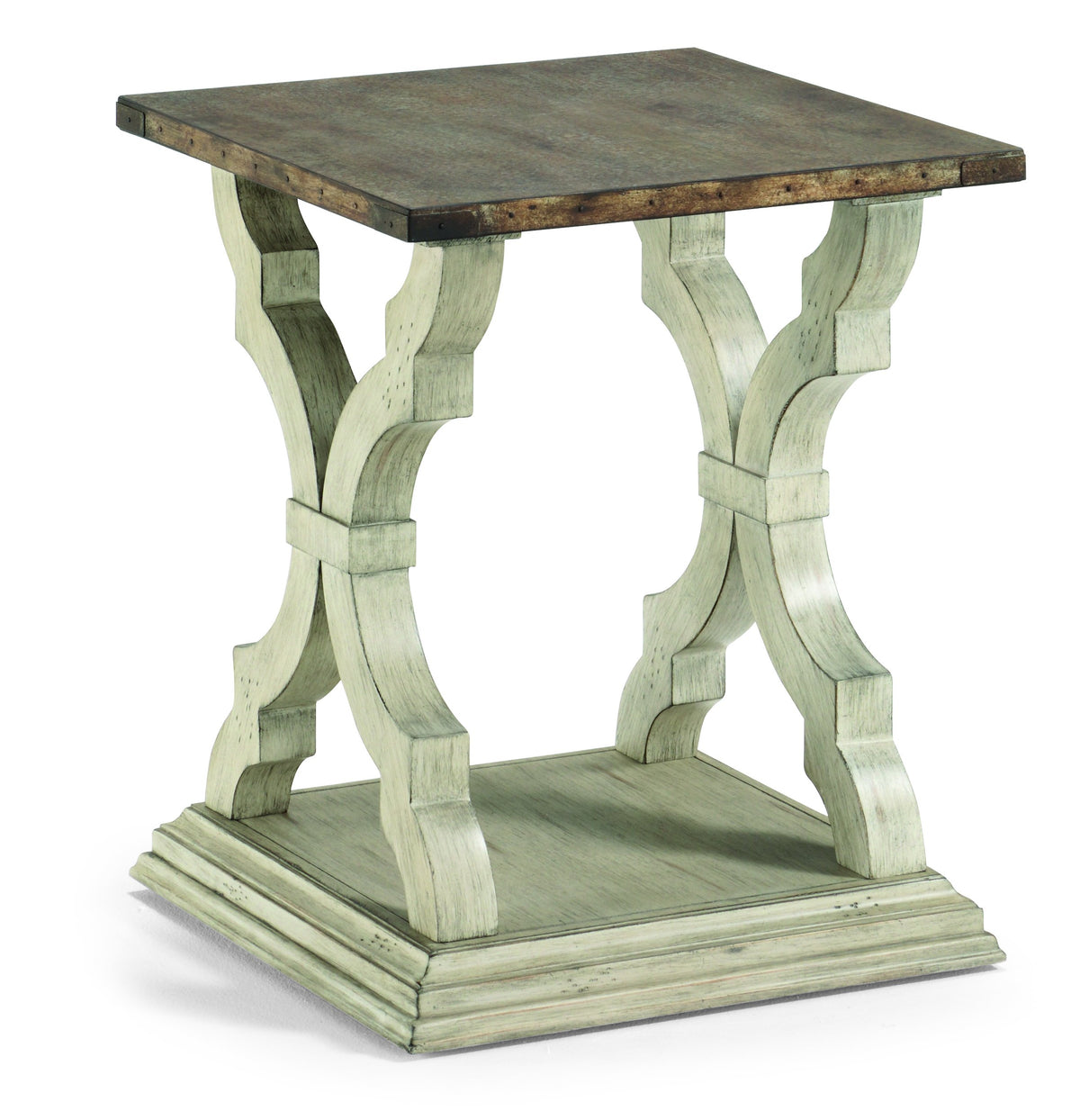 Make a statement in your home with Estate's galvanized sheet metal tops paired with scroll wood bases, both in an antiqued finish. Estate's classical architectural elements pair with vintage character to create a beautiful combination for any home.