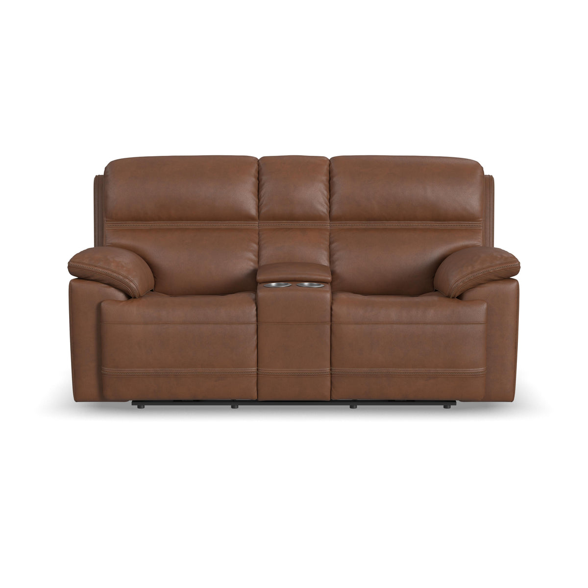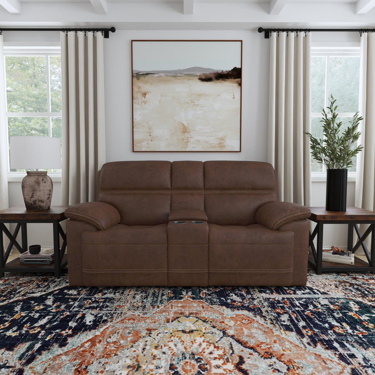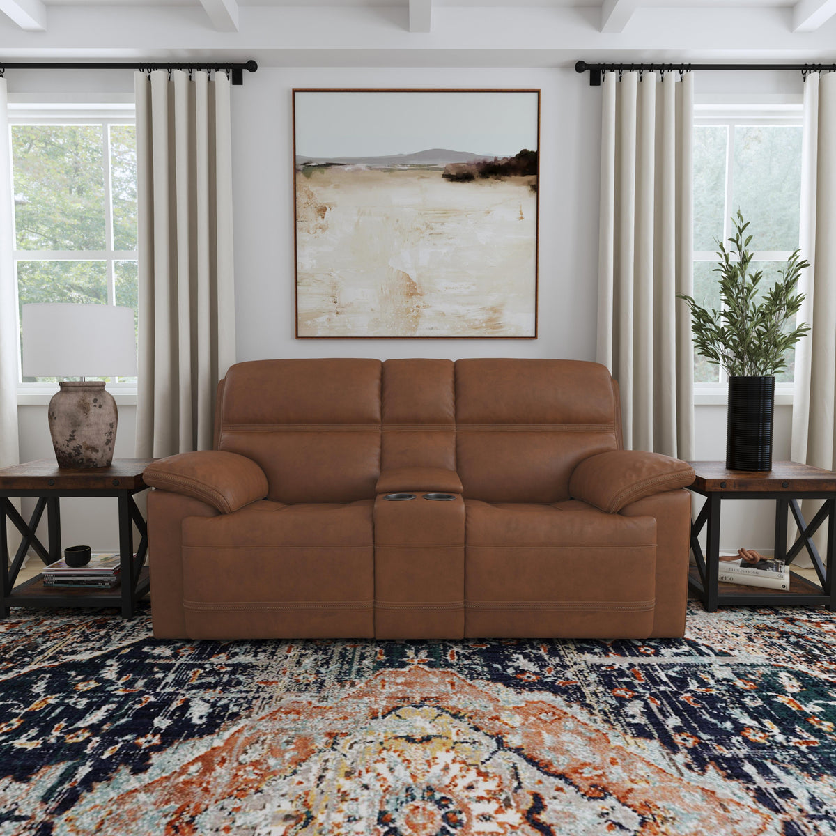 Inviting comfort and long-lasting support will make you want to stay nestled all day and night in our Jackson power reclining loveseat with console. This loveseat offers fine-tunable relaxation for two with a dual power recline mechanism, adjustable headrests and Zero Gravity technology that reduces tension and pressure on the body. An attractive cross-stitch pattern on the back, armrest edges and footrests add distinctive style, while the waterfall chaise footrests and pillowy arms provide comfortable support. Convenient features such as USB charging ports for mobile devices and a center storage console for drinks and remotes ensure you can settle in and relax for hours on end. Available in two color choices of luxurious top grain leather, the Jackson power reclining loveseat with console will remain looking beautiful in your home for years to come.