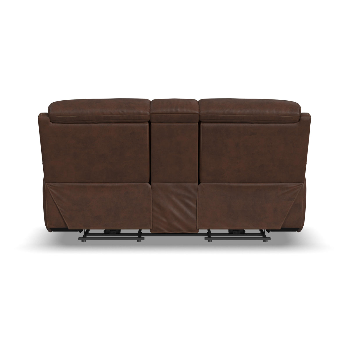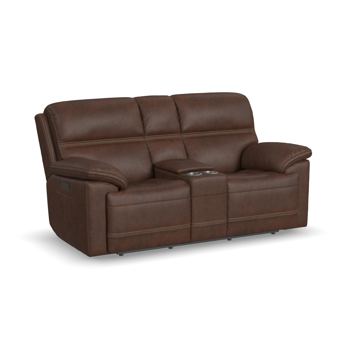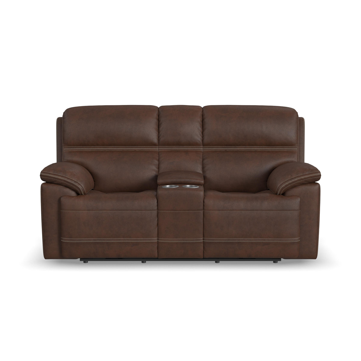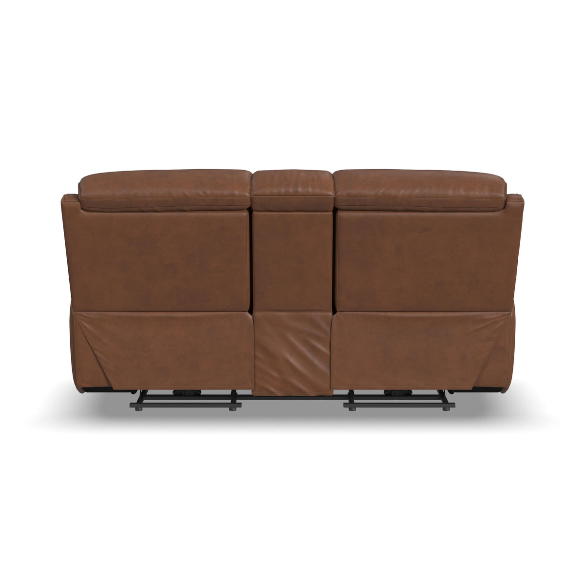 Inviting comfort and long-lasting support will make you want to stay nestled all day and night in our Jackson power reclining loveseat with console. This loveseat offers fine-tunable relaxation for two with a dual power recline mechanism, adjustable headrests and Zero Gravity technology that reduces tension and pressure on the body. An attractive cross-stitch pattern on the back, armrest edges and footrests add distinctive style, while the waterfall chaise footrests and pillowy arms provide comfortable support. Convenient features such as USB charging ports for mobile devices and a center storage console for drinks and remotes ensure you can settle in and relax for hours on end. Available in two color choices of luxurious top grain leather, the Jackson power reclining loveseat with console will remain looking beautiful in your home for years to come.
