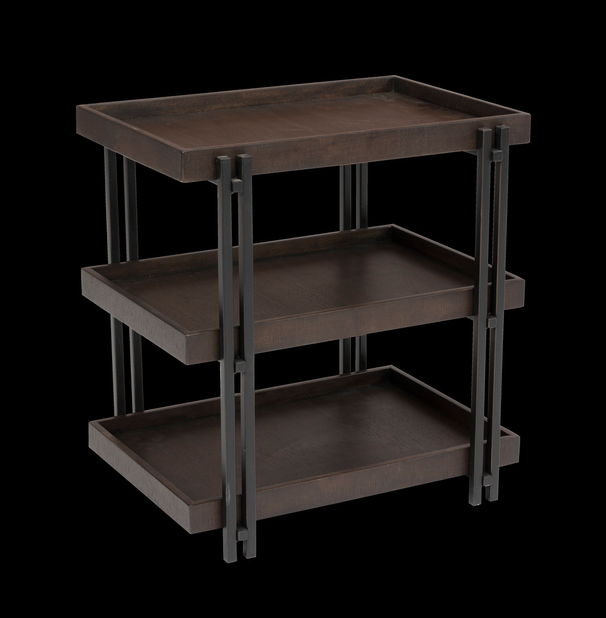 Bring contemporary style that highlights both form and function to your living spaces with the Prairie end table. A tray-style top is ideal for displaying decorative items, while two additional tray-style shelves offer plenty of storage space for books, magazines and other essentials. This attractive yet practical table showcases a rich, dark finish on the walnut veneers and also features rough-sawn edge banding for added texture and visual appeal. Refined metal legs in a gunmetal finish pull the look together and provide a mixed-media aesthetic to the design.