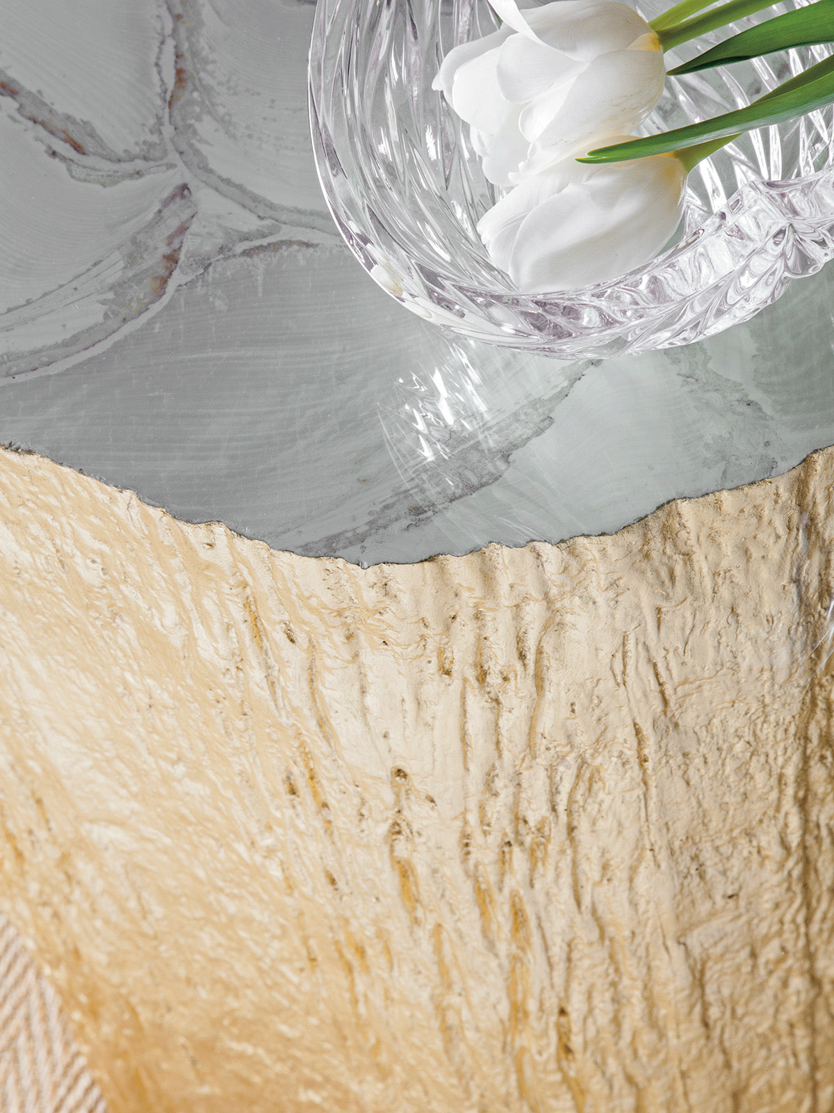Trunk Segment Round Dining Table With Glass Top-Gold Leaf